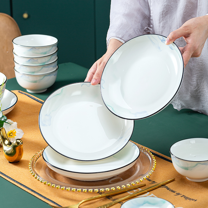碗家用2025新款简约碗碟套装陶瓷碗中式轻奢饭碗盘子现代碗筷餐具