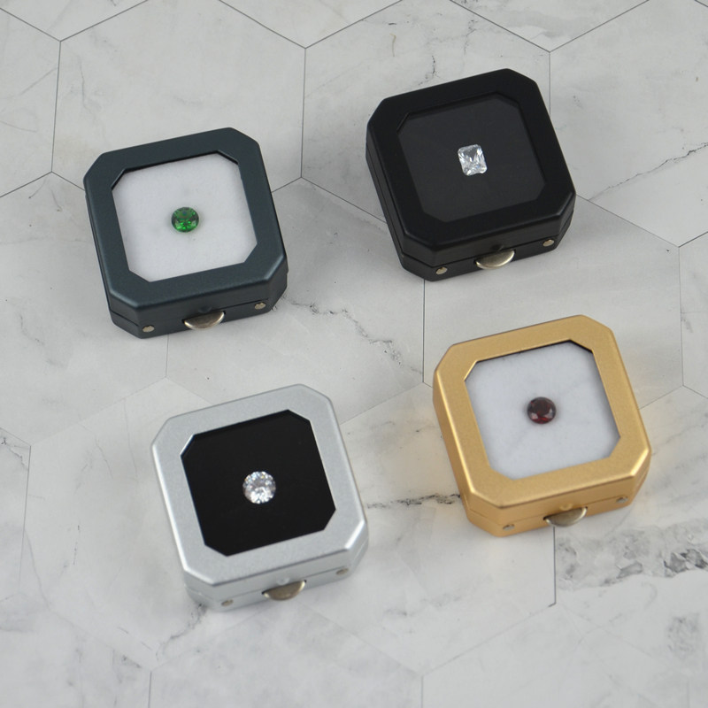 透明盖戒面裸石彩宝钻石盒宝子首饰收纳藏钻铁盒展示盒托盘珠宝盘