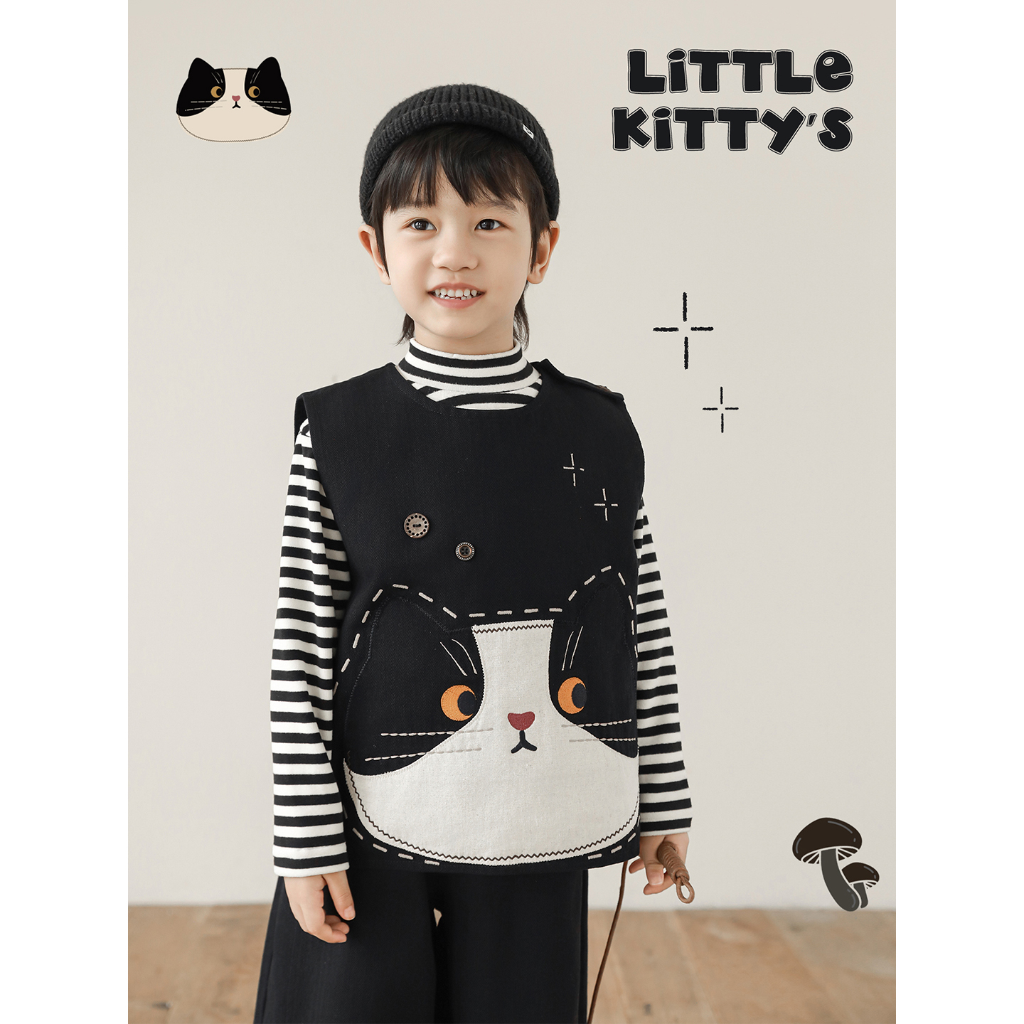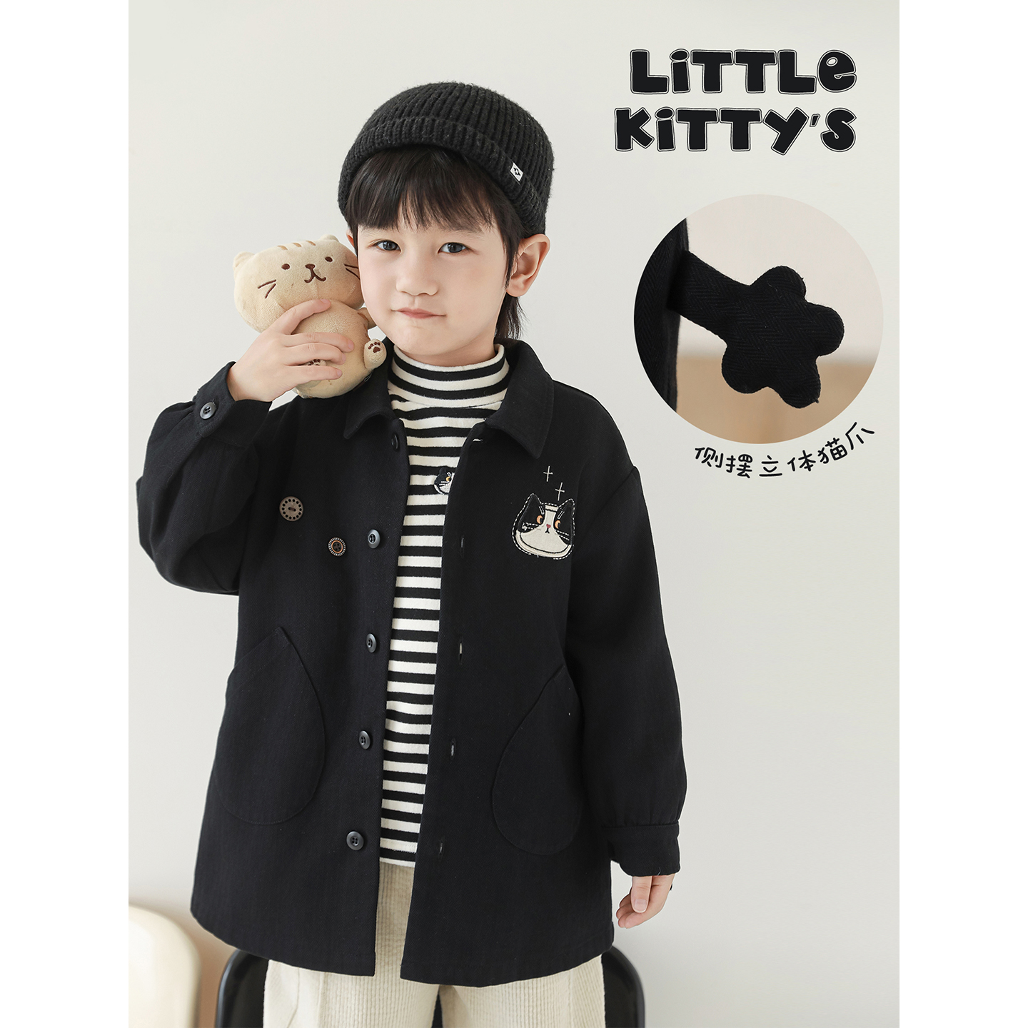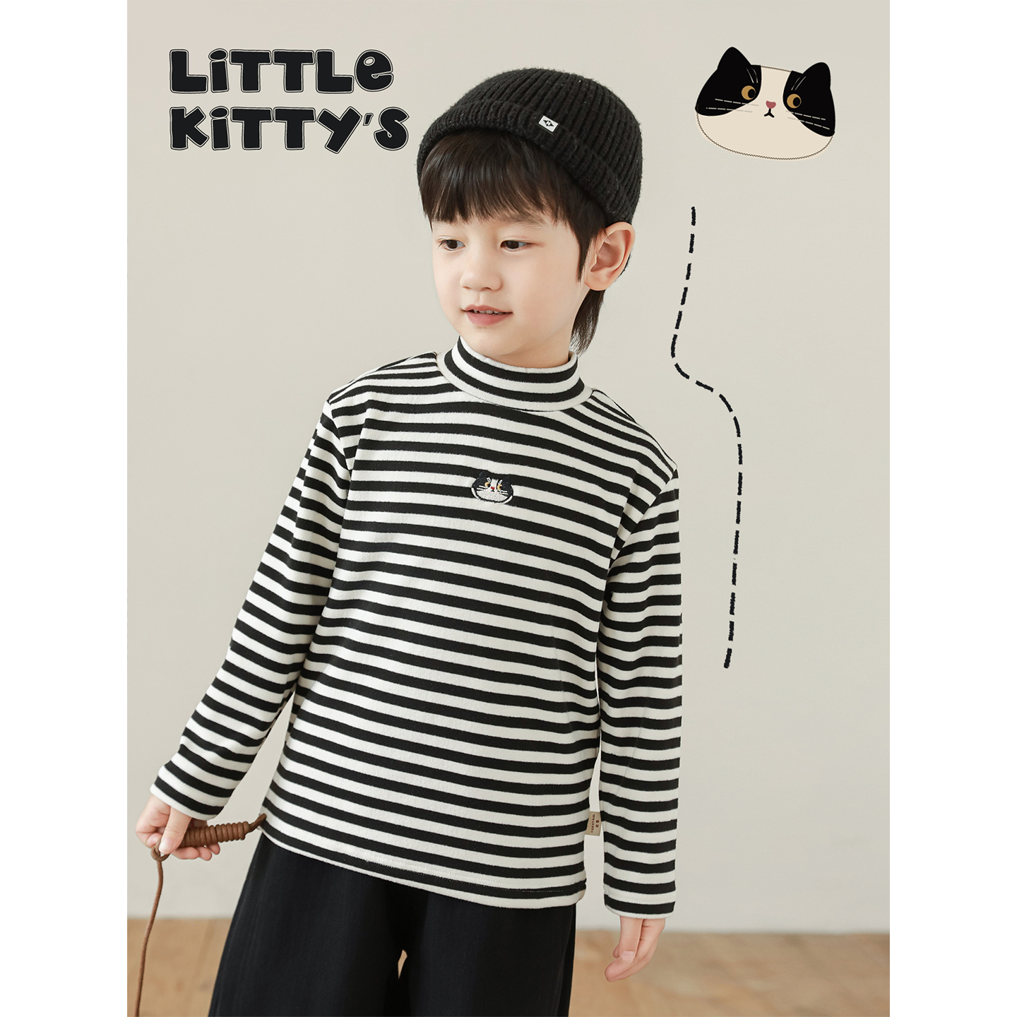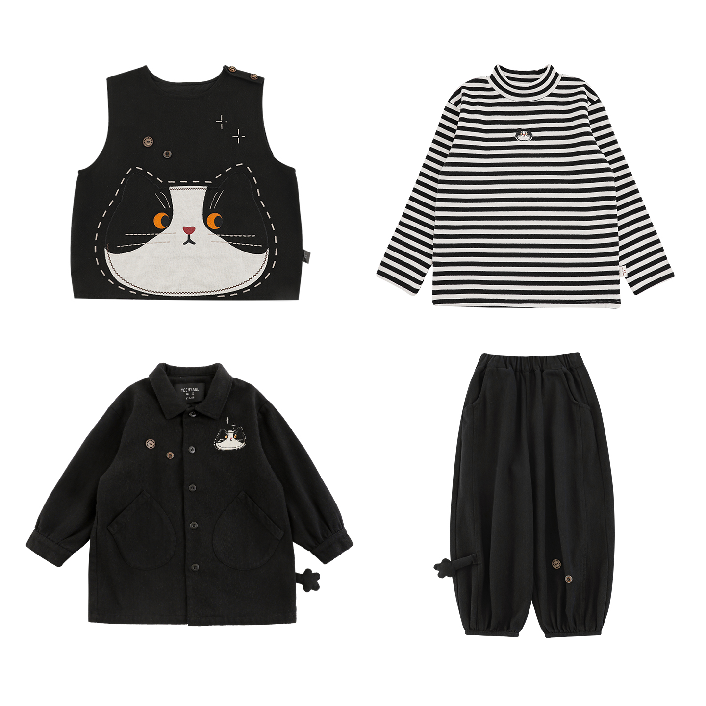 幼悠童装男童无袖马甲日系休闲长袖外套条纹打底衫黑色奶猫套装潮