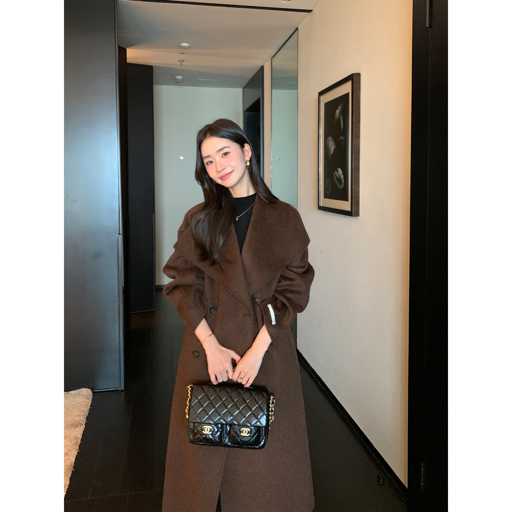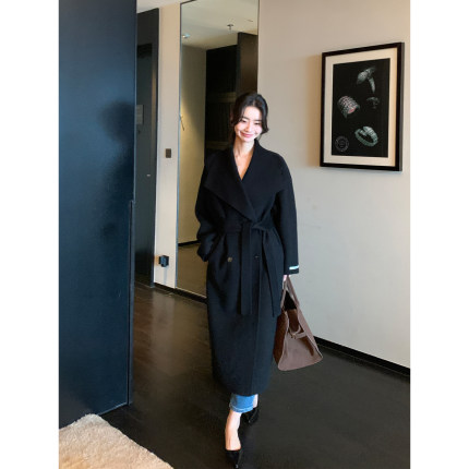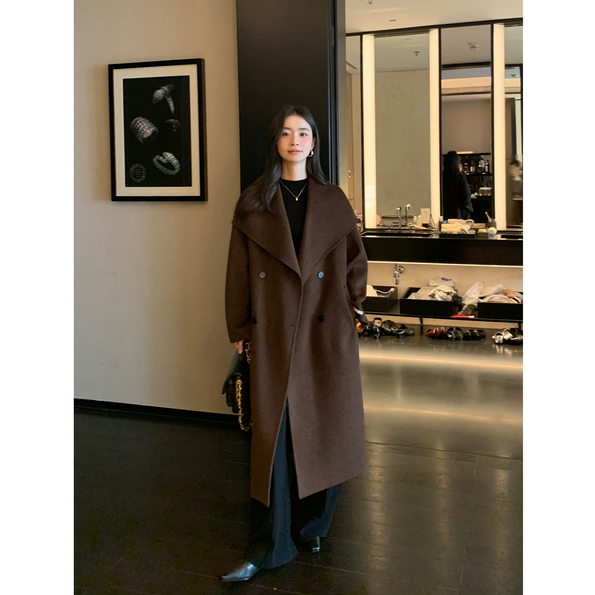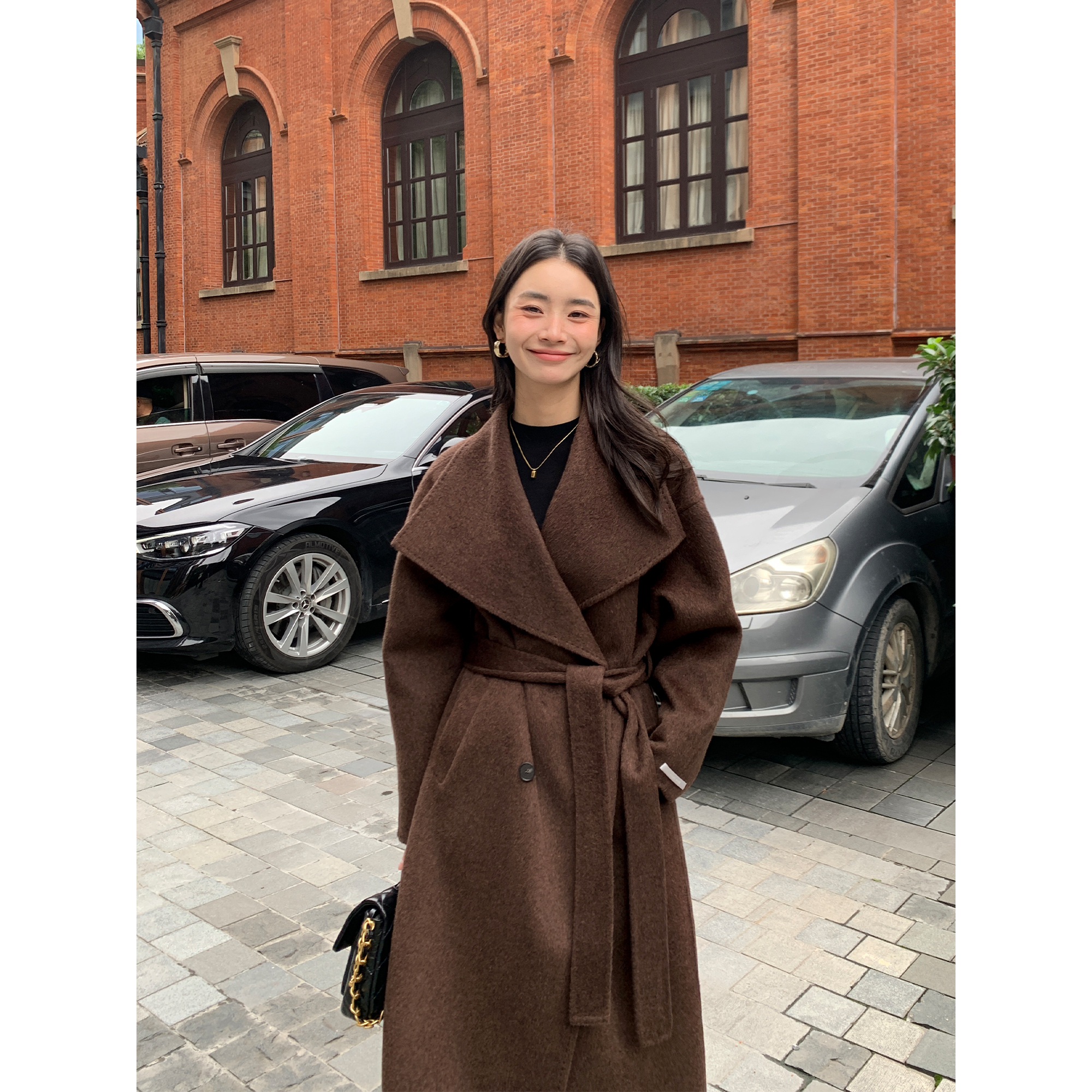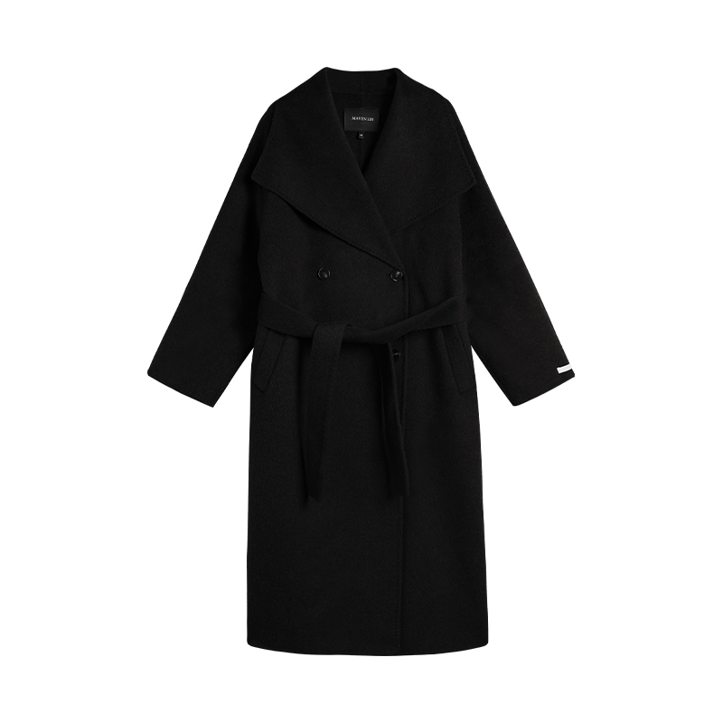 Maven Lin 大翻领双面羊毛100%大衣女2025冬季慵懒风系带呢子外套