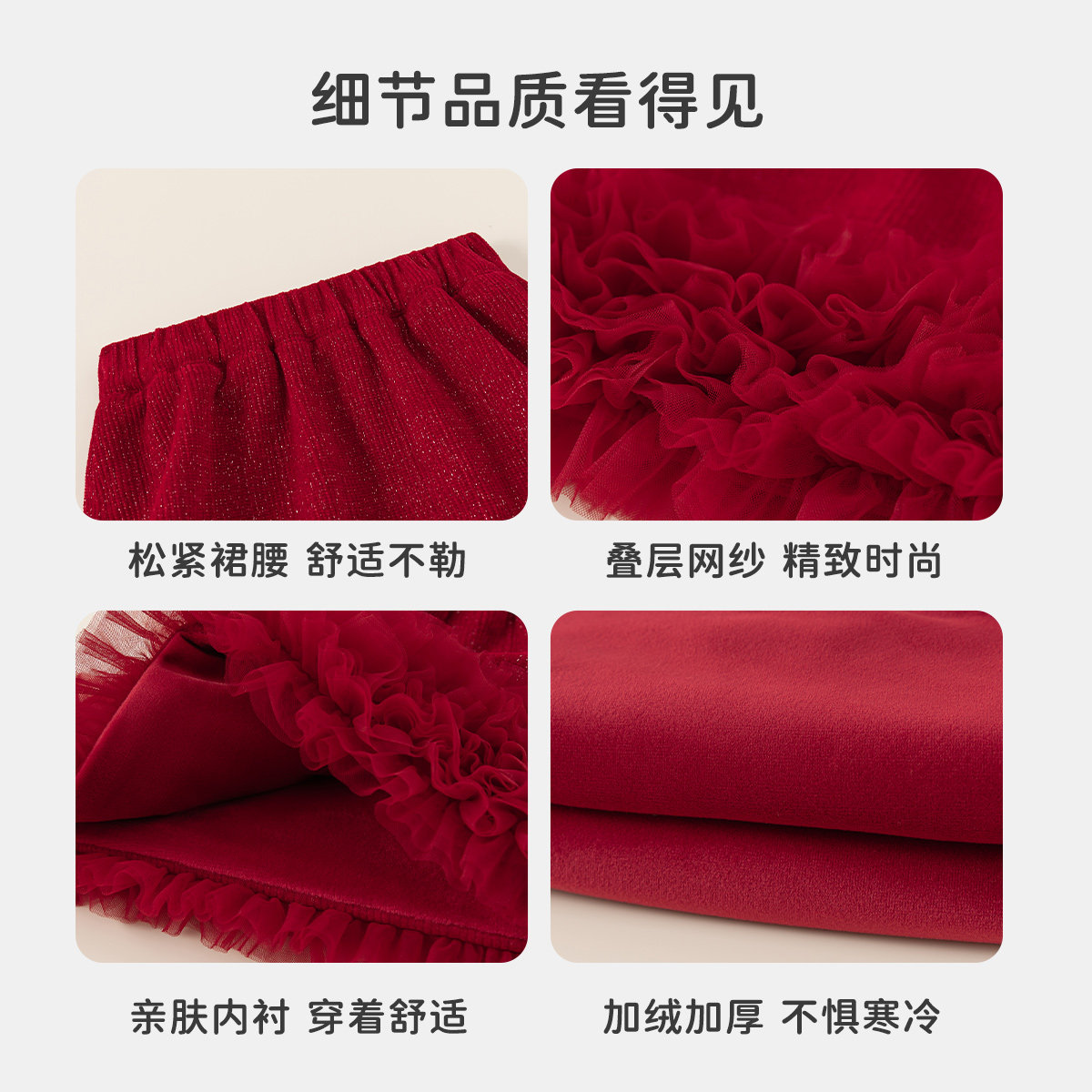 女童半身裙红色裙子儿童冬季短裙过年冬装新年衣服女孩秋冬蓬蓬裙