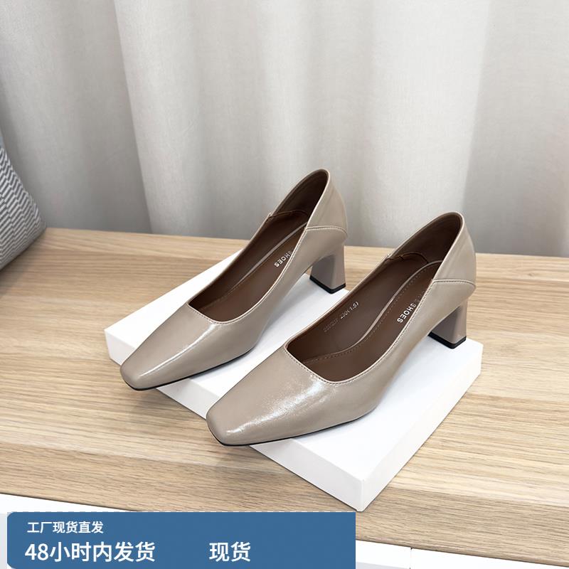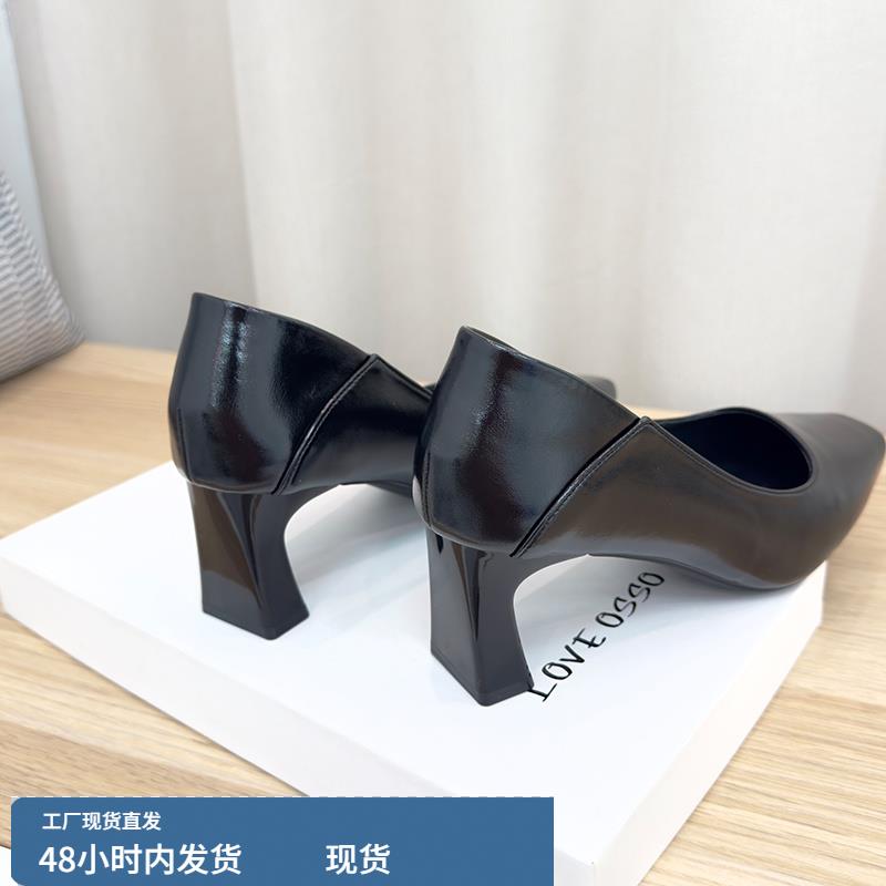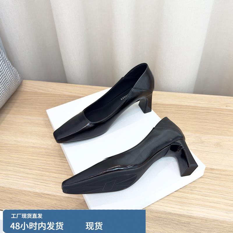 法式方头高跟鞋女粗跟2025春新款软皮气质单鞋黑色通勤正装职业鞋