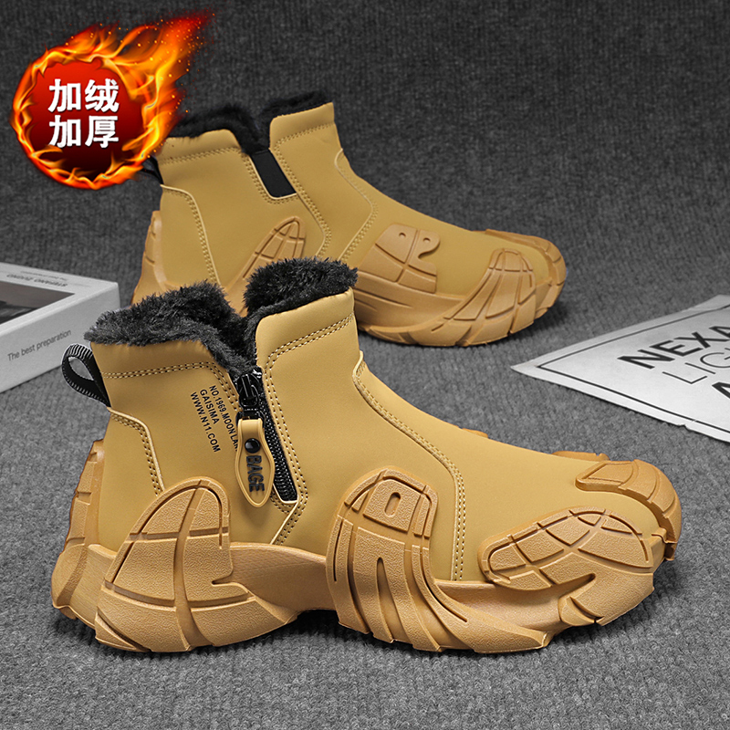 VZS冬季加绒加厚保暖马丁靴棉鞋一脚蹬高帮防寒雪地工装男鞋休闲