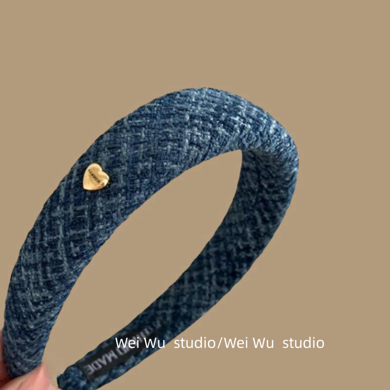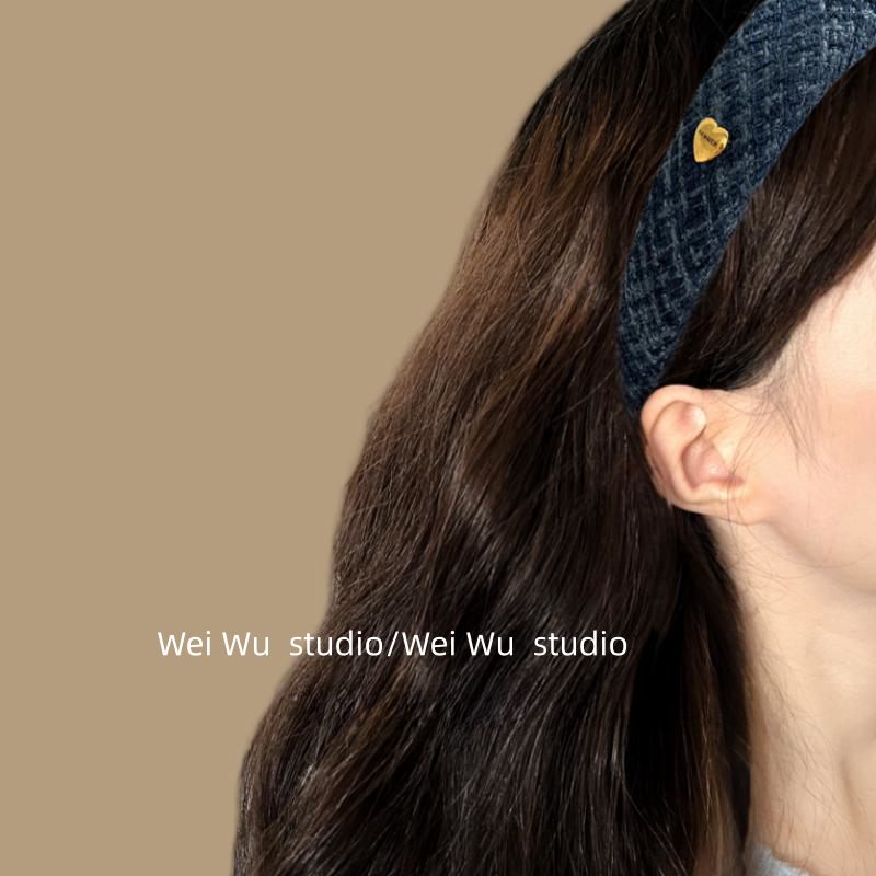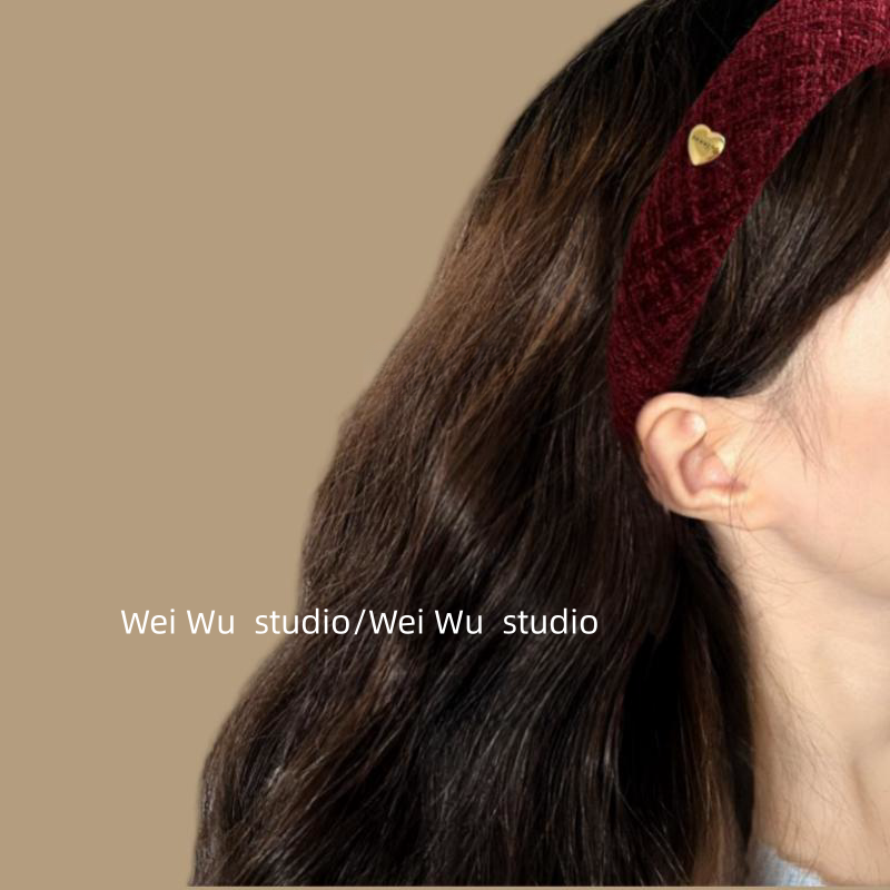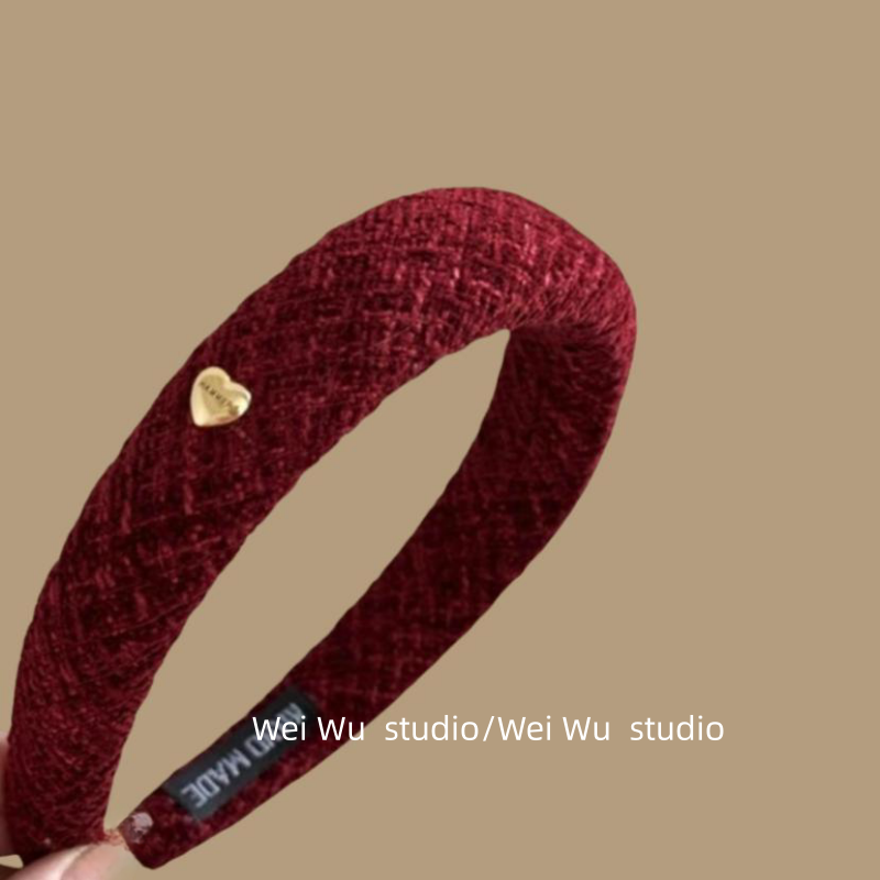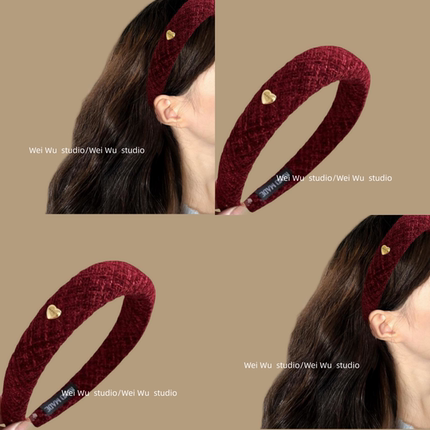 馥郁酒红!爱心金标发箍!复古格纹头箍女外出高颅顶发卡旅行发饰