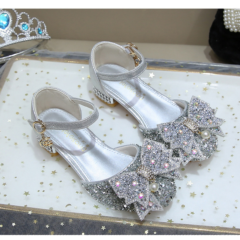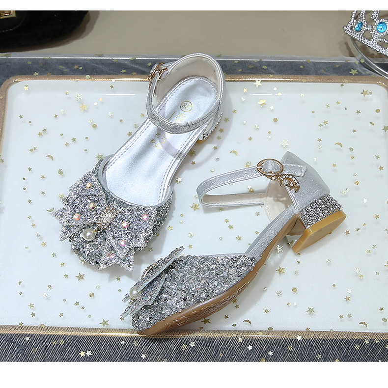 女童公主鞋2025夏季新款儿童水晶鞋演出走秀表演鞋女孩闪钻高跟鞋