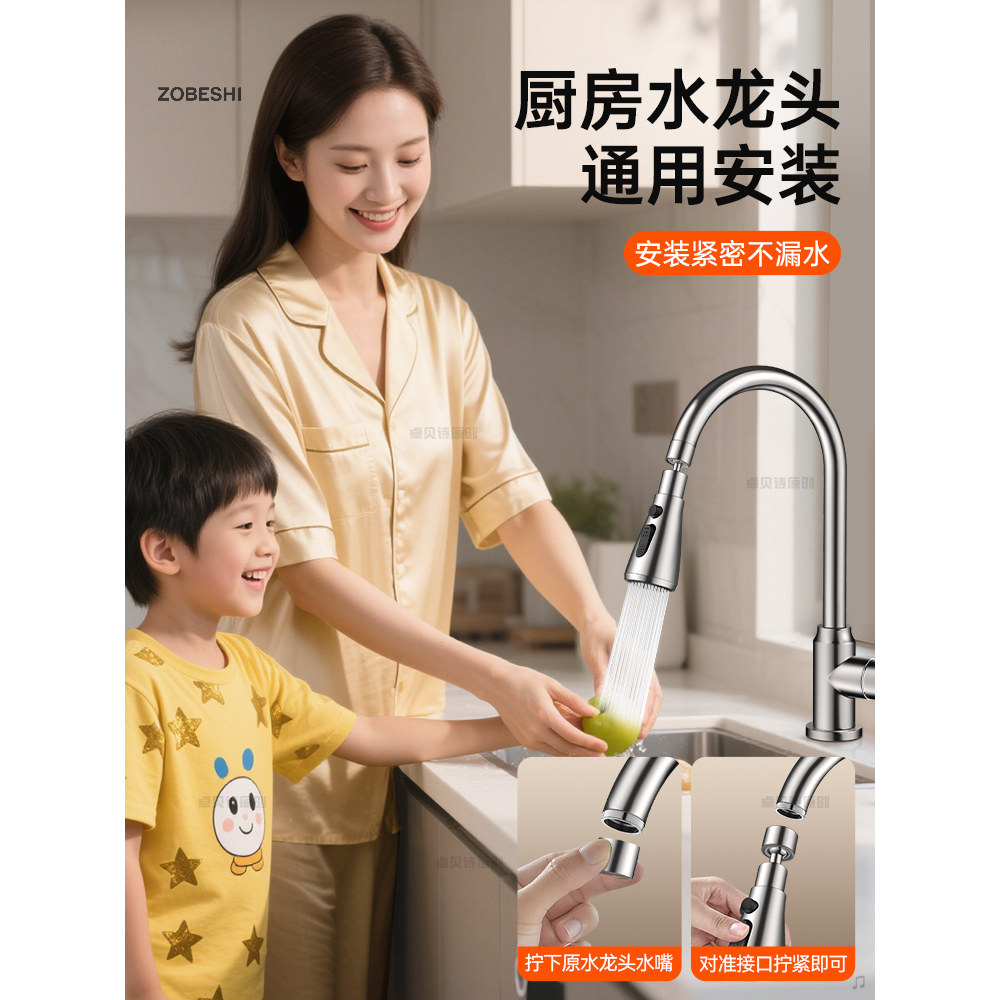 适用于九牧toto全铜水龙头防溅神器加长增压花洒喷头厨房水槽冷热