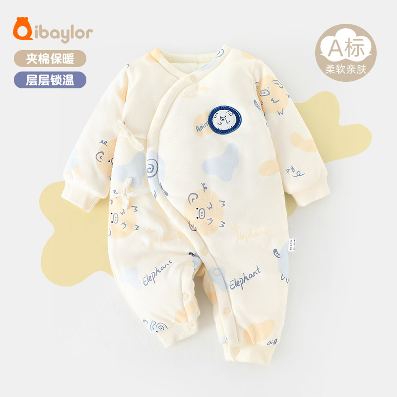 婴儿连体衣保暖春秋冬装夹棉新生儿衣服宝宝外出哈衣加厚套装冬季