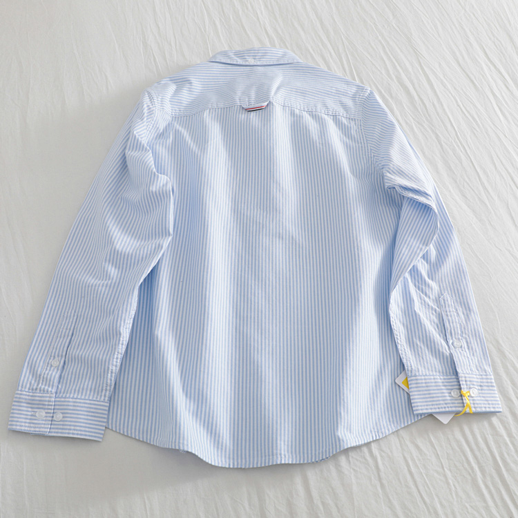 通勤百搭单排扣长袖纯棉条纹衬衫