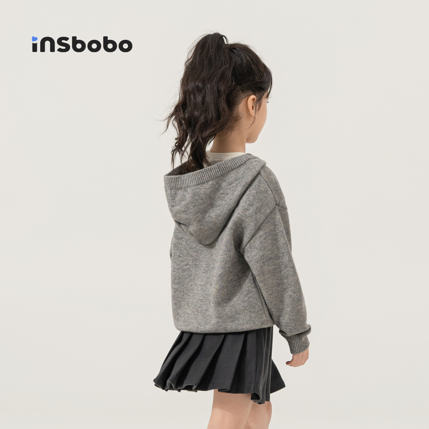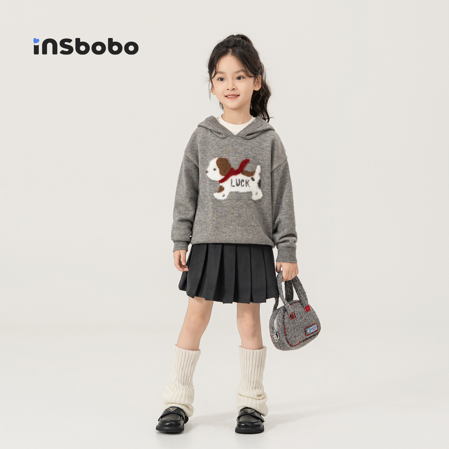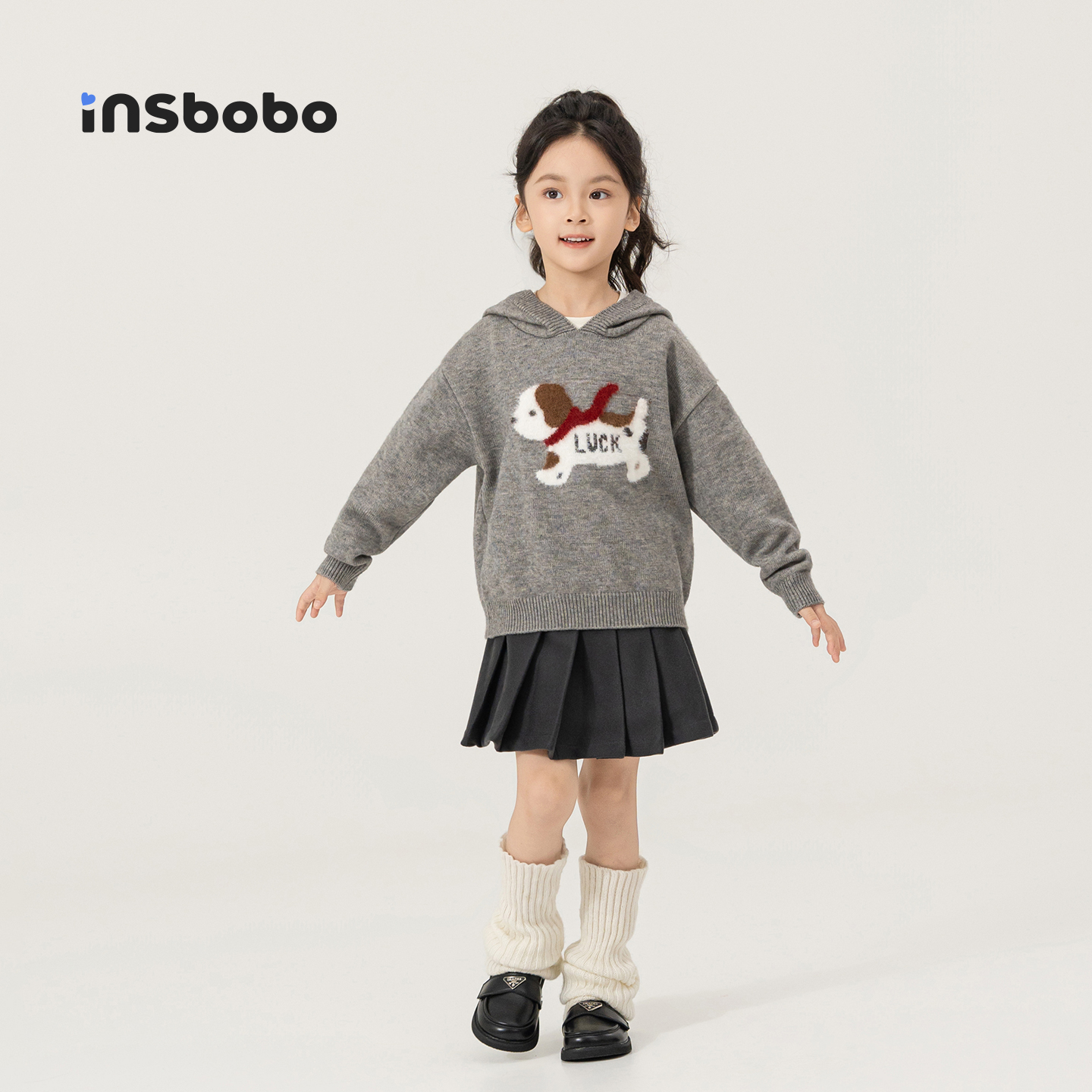 INSbobo儿童毛衣女童连帽上衣女童针织衫卡通女孩衣服春秋款童装