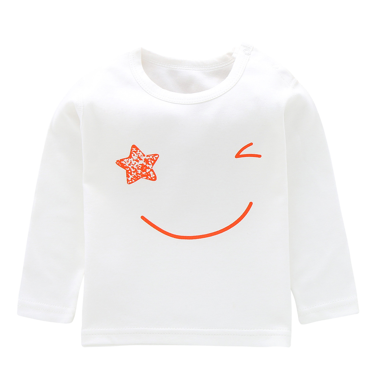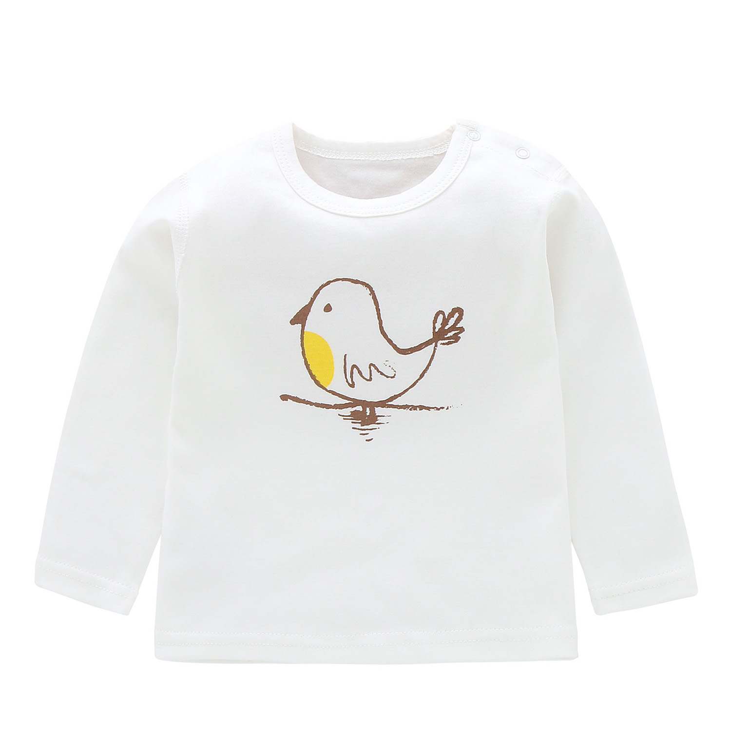 婴儿长袖T恤纯棉春秋薄秋衣0-2男女宝宝圆领肩扣套头无骨打底上衣