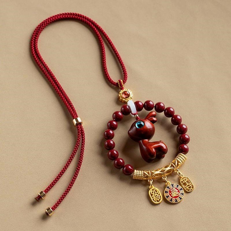 天然朱砂平安小鹿汽车挂件车内吊坠本命年新款女挂坠如意车载饰品