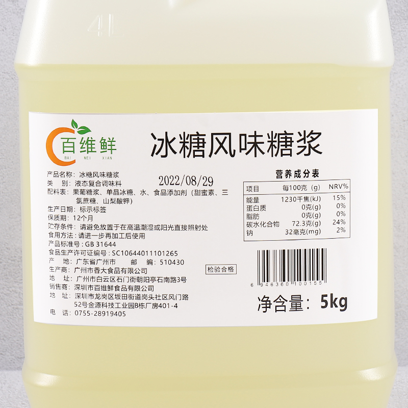 维乐鲜冰糖风味糖浆5kg单晶冰糖柠檬茶水果茶店专用果糖奶茶材料
