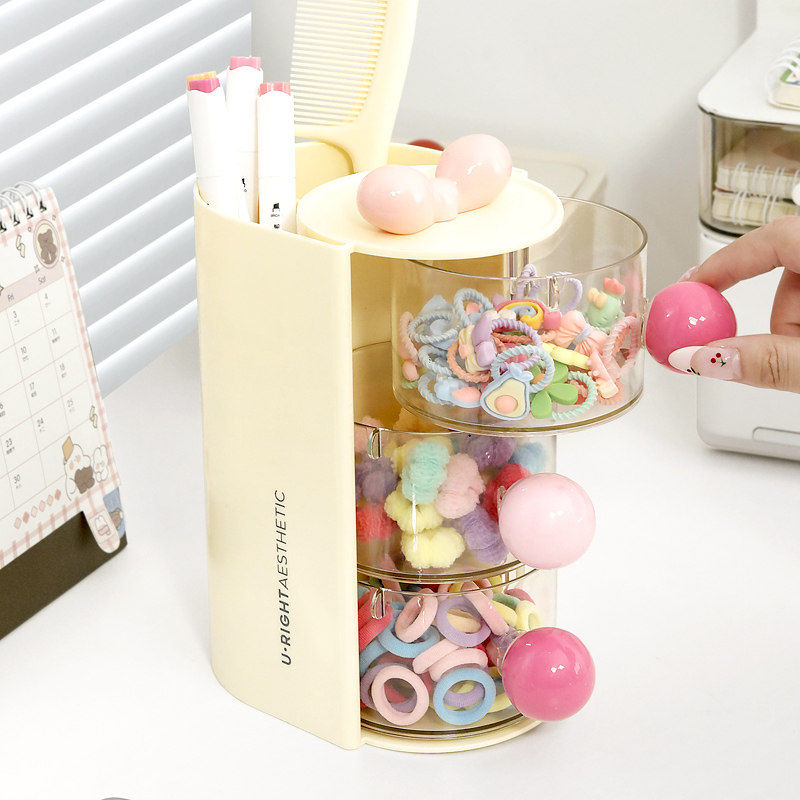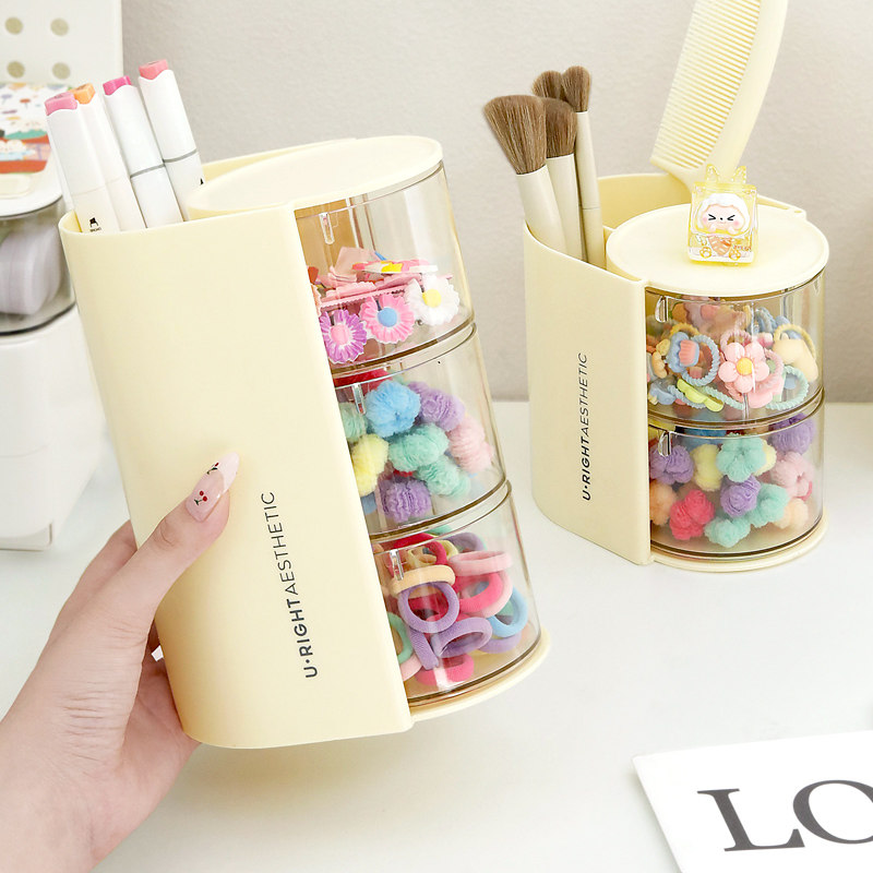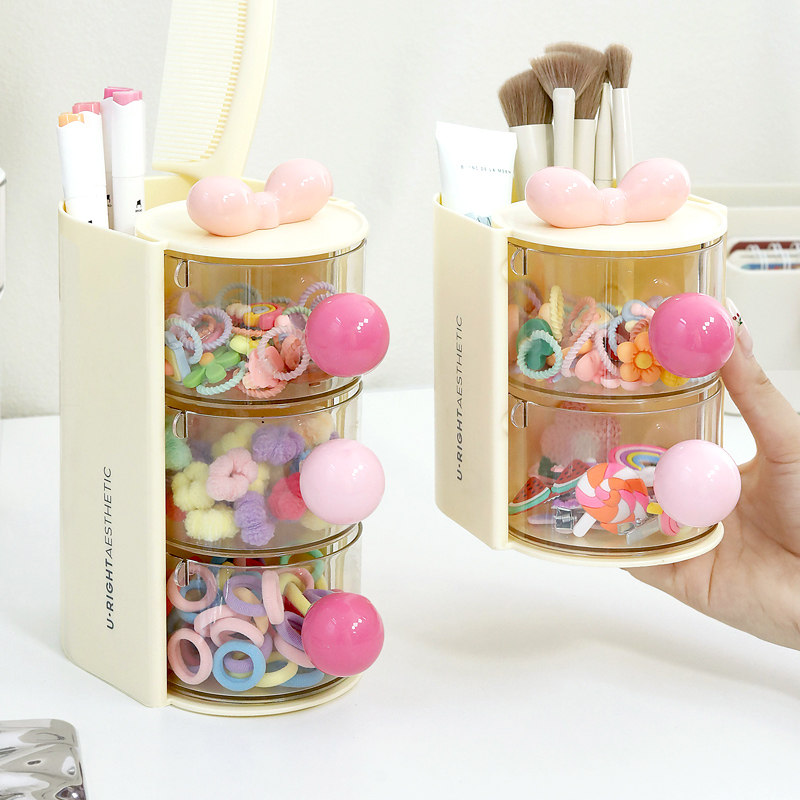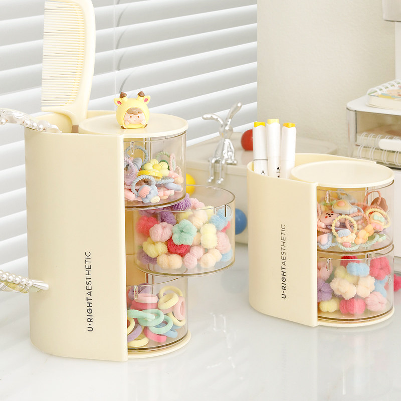 旋转儿童发饰收纳盒多层分格女孩发夹皮筋头绳发箍可爱盒子首饰盒