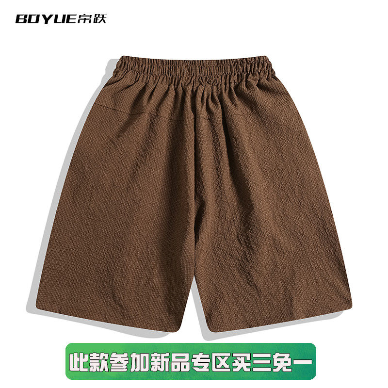 BOYUE帛跃美式泡泡纱褶皱短裤男女日系复古街头休闲百搭五分裤子