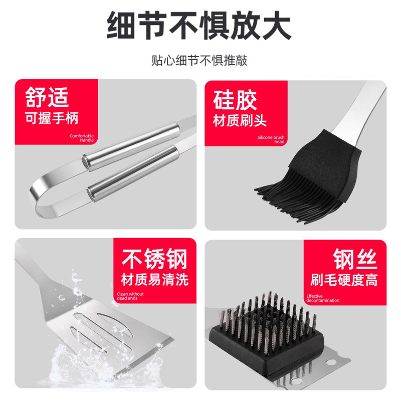 洛摩鼎不锈钢烧烤工具套装户外露营烧烤便携用具夹子组合工具包