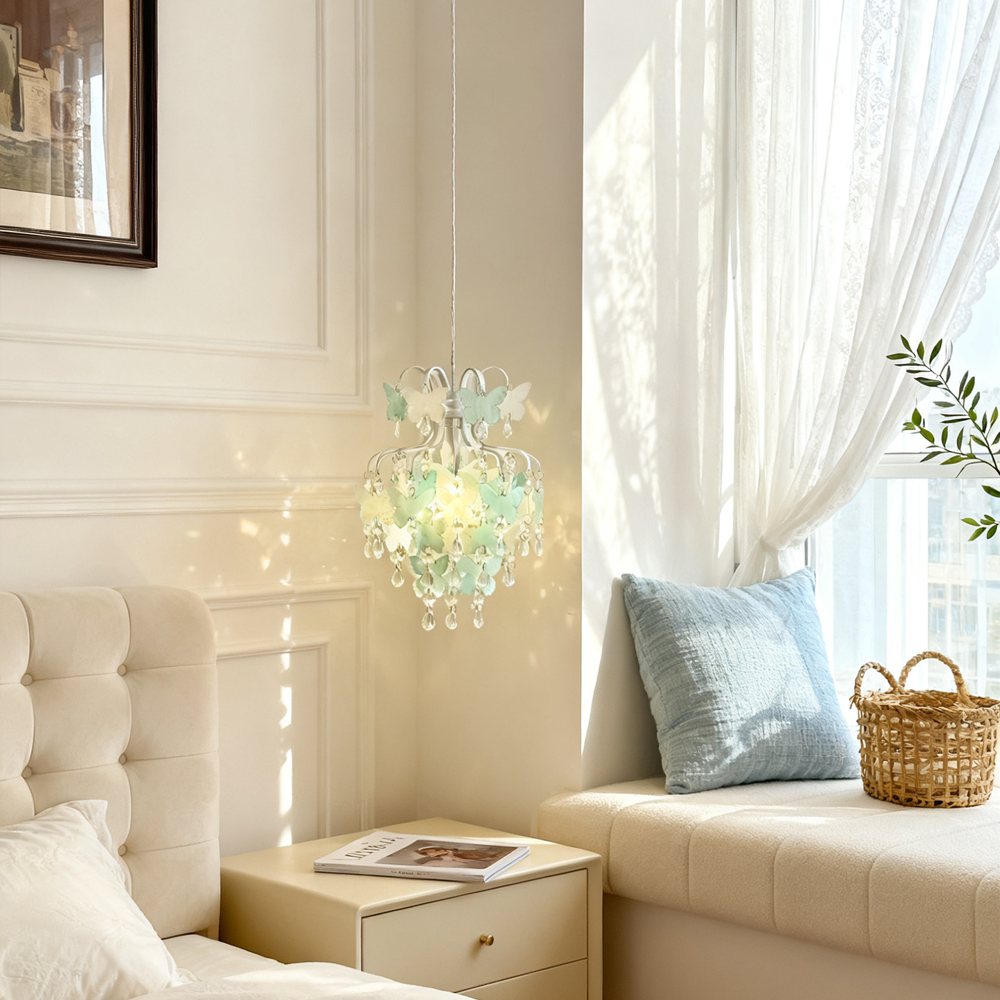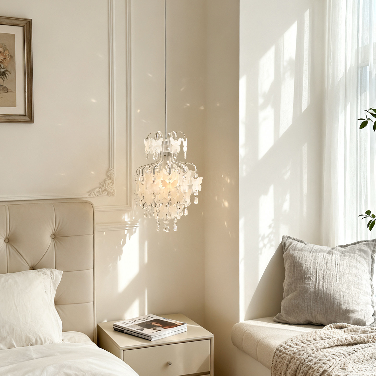 法式复古水晶小吊灯轻奢客厅背景墙卧室床头灯贝壳蝴蝶装饰衣帽间