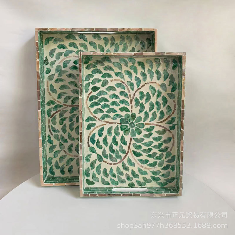 越南创意彩贝壳托盘手绘装饰茶盘高档首饰盘置物盘家用桌面收纳盘