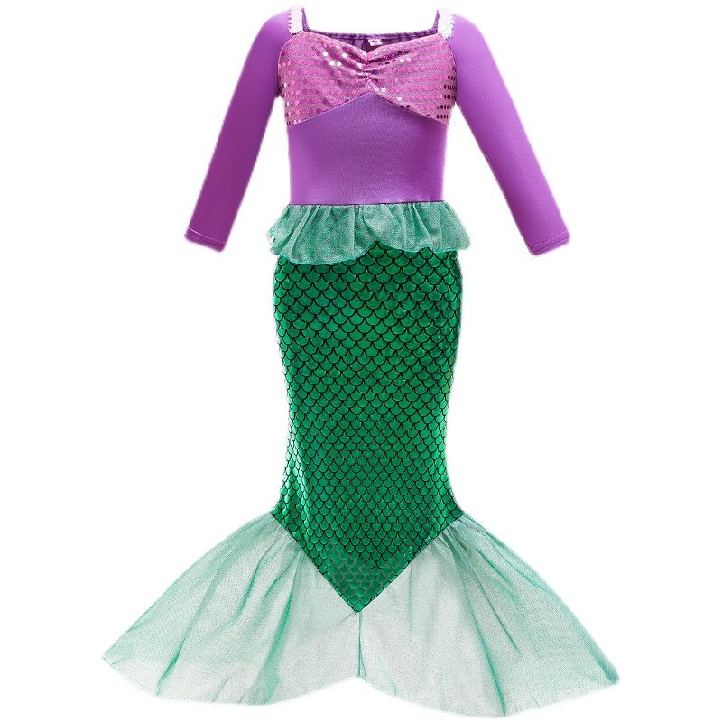 美人鱼衣服迪士尼人鱼公主裙儿童六一万圣节走秀鱼尾生日服装长袖