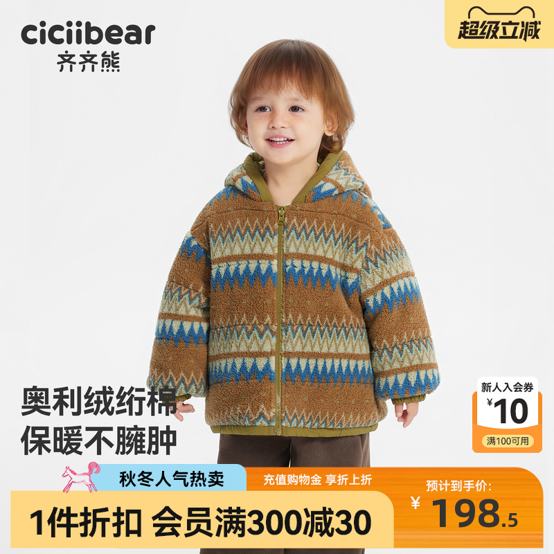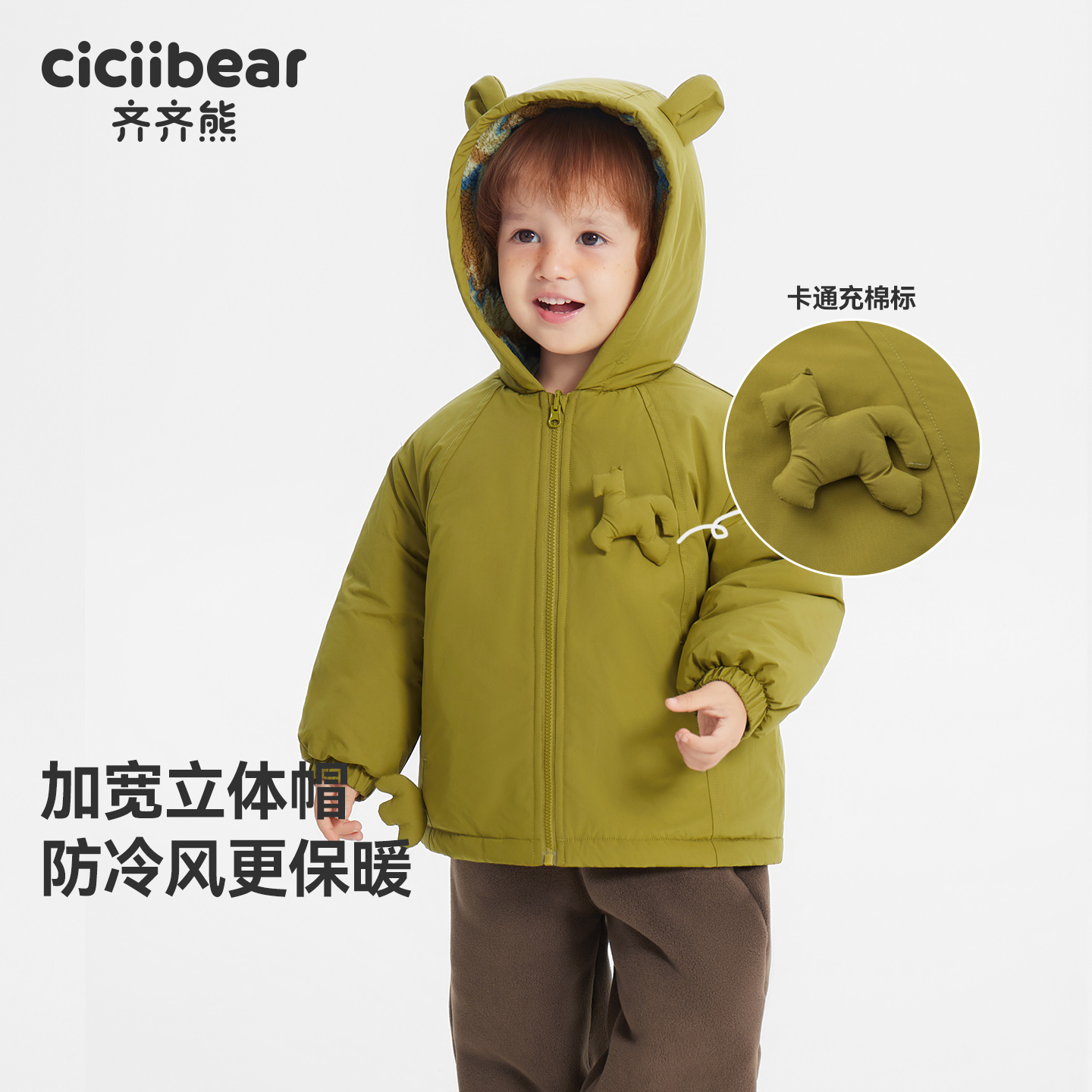 [两面穿]齐齐熊宝宝夹棉外套男童保暖棉服儿童秋冬装2025新款棉衣