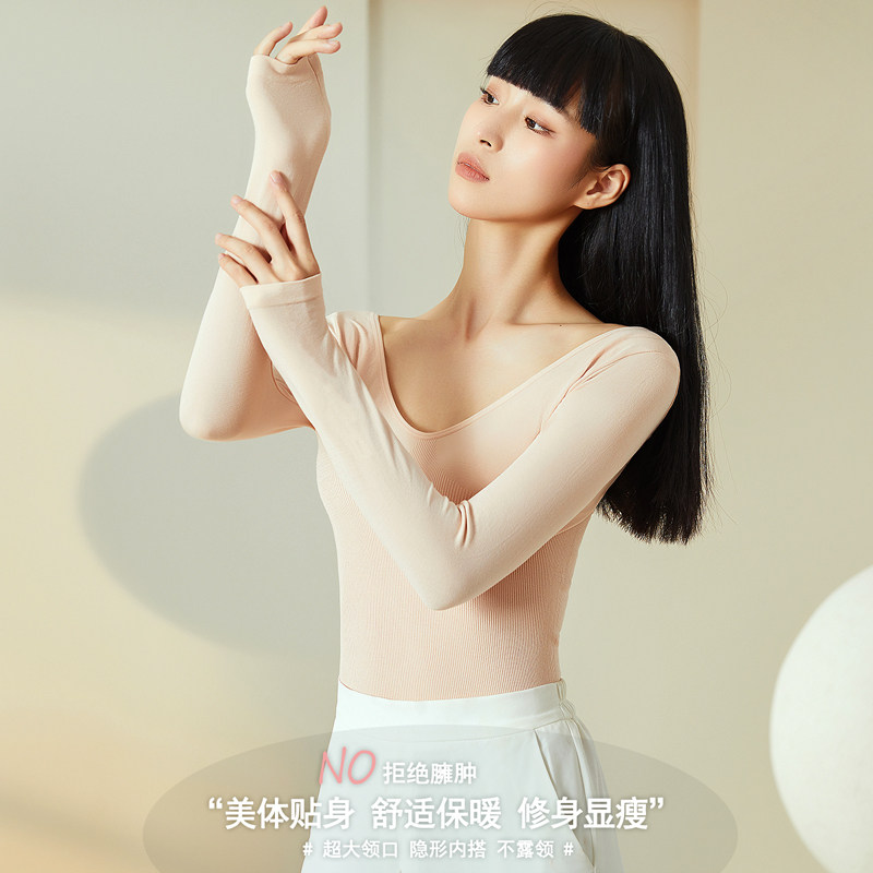 低领发热衣女超薄款收腹塑身秋衣贴身隐形内搭长袖内搭衣上衣冬