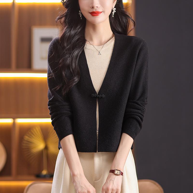 针织开衫女士短款春秋季旗袍披肩小外搭妈妈红色中式上衣毛衣外套