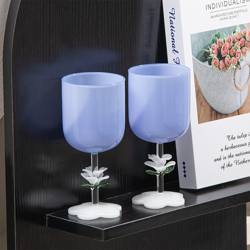 英国wvii蓝玉花女士高颜值葡萄酒高脚杯红酒杯轻奢高级感家用套装