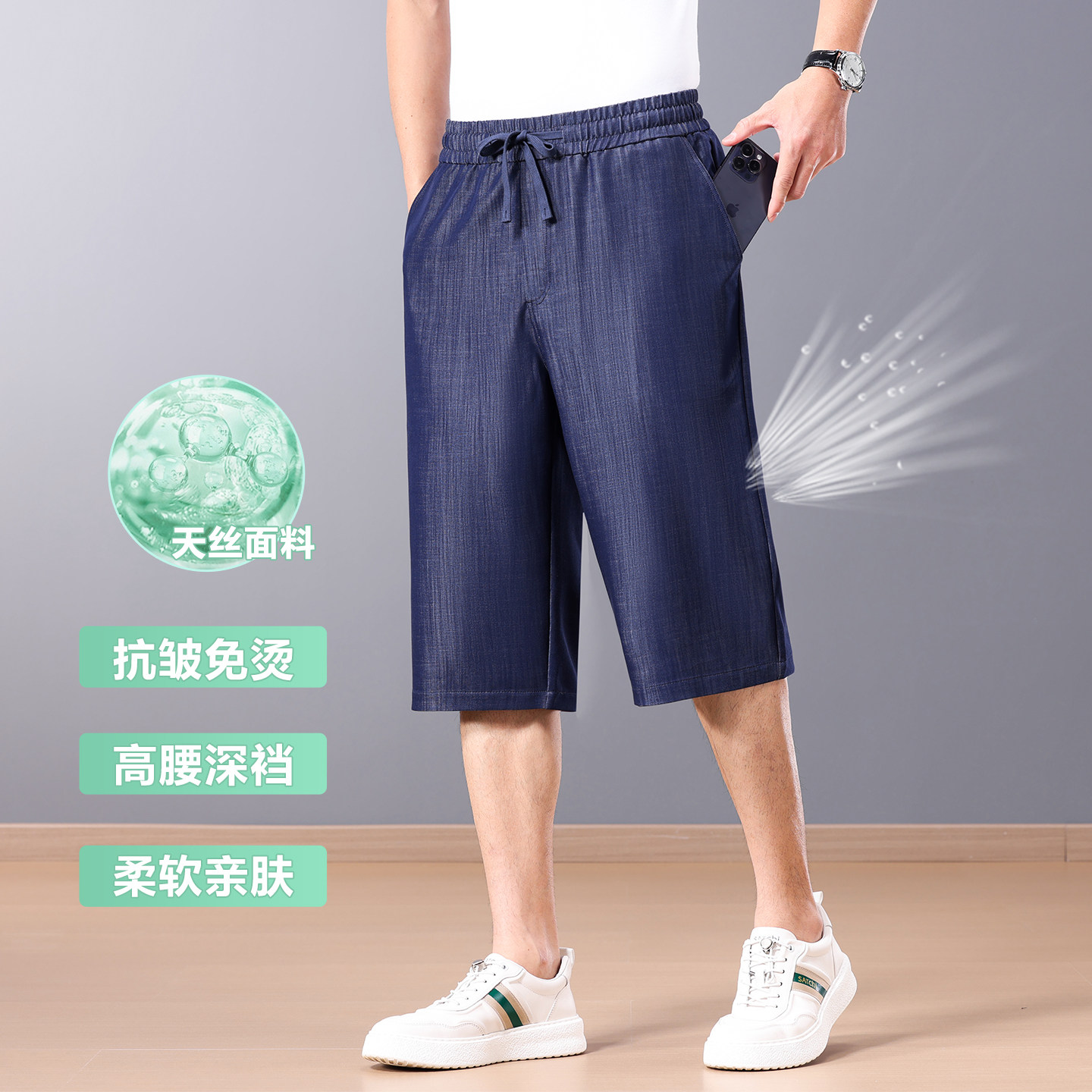 轻薄夏季不掉色七分裤男