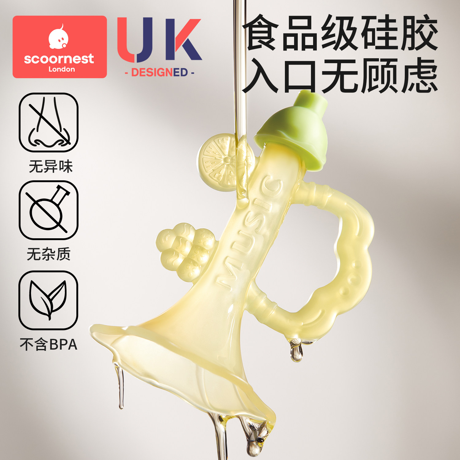 科巢小喇叭牙胶婴儿防吃手小月龄硅胶咬磨牙棒宝宝玩具6个月以上