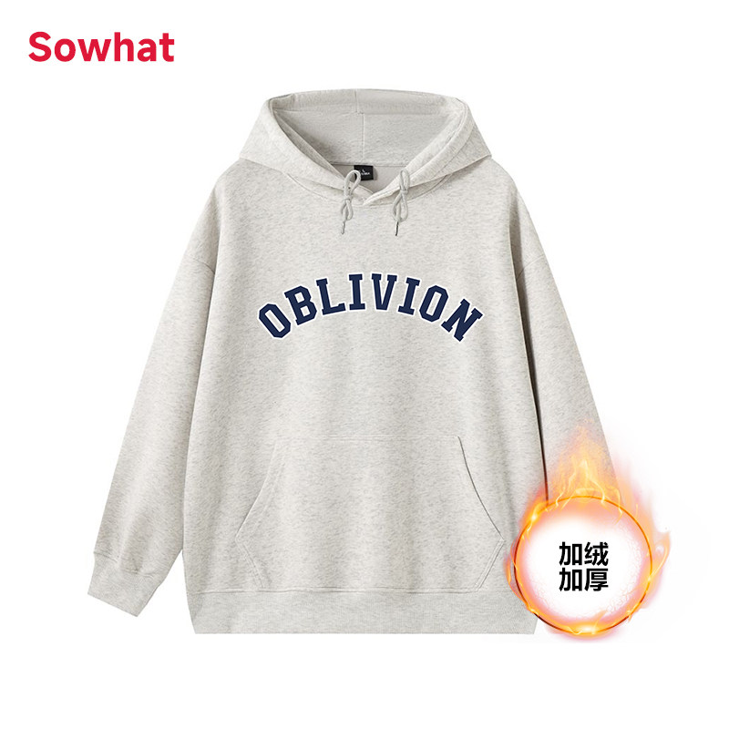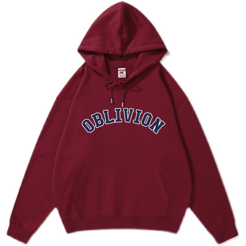 加绒加厚酒红色连帽卫衣女男情侣款设计感小众oversize套头帽衫