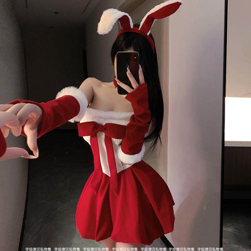 圣诞节女装红色兔女郎丝绒裙套装cos战袍约会制服qqny甜美冬季