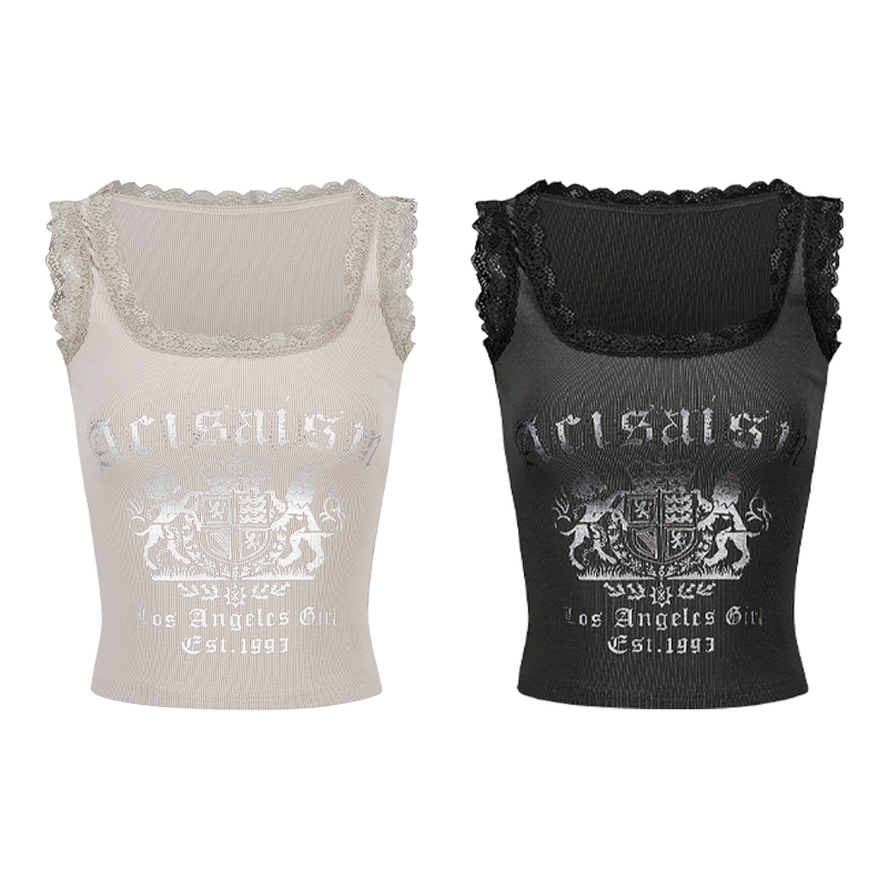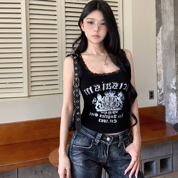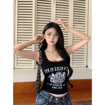 Mosesqueen魔西女王美式蕾丝边吊带背心2025夏季新款辣妹方领上衣
