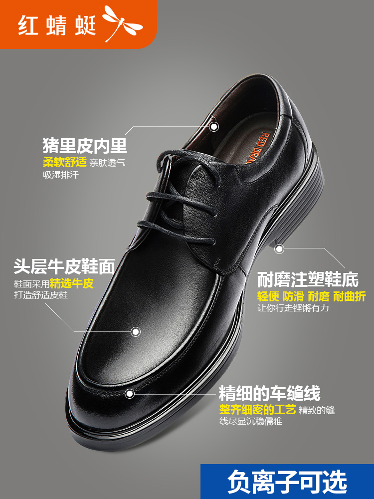 皮鞋红蜻蜓透气商务正装