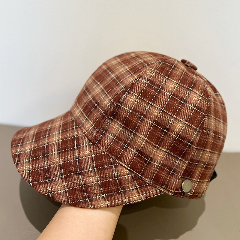 双面款鸭舌帽子女秋冬季格纹棒球帽灯芯绒网红保暖马术帽防风休闲