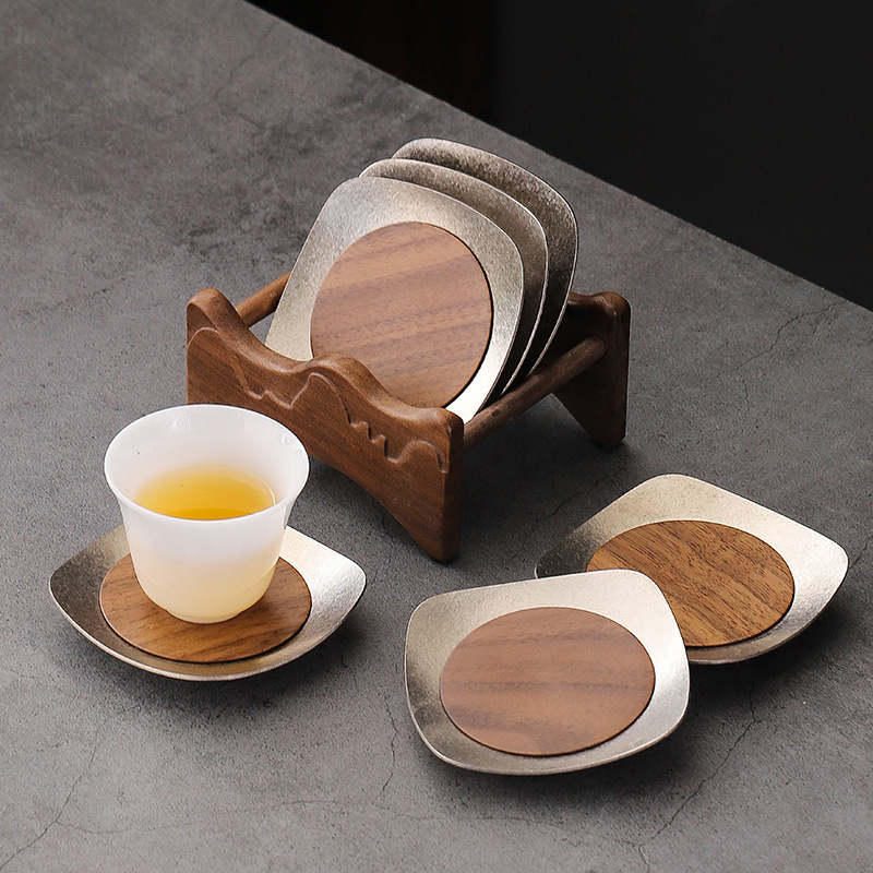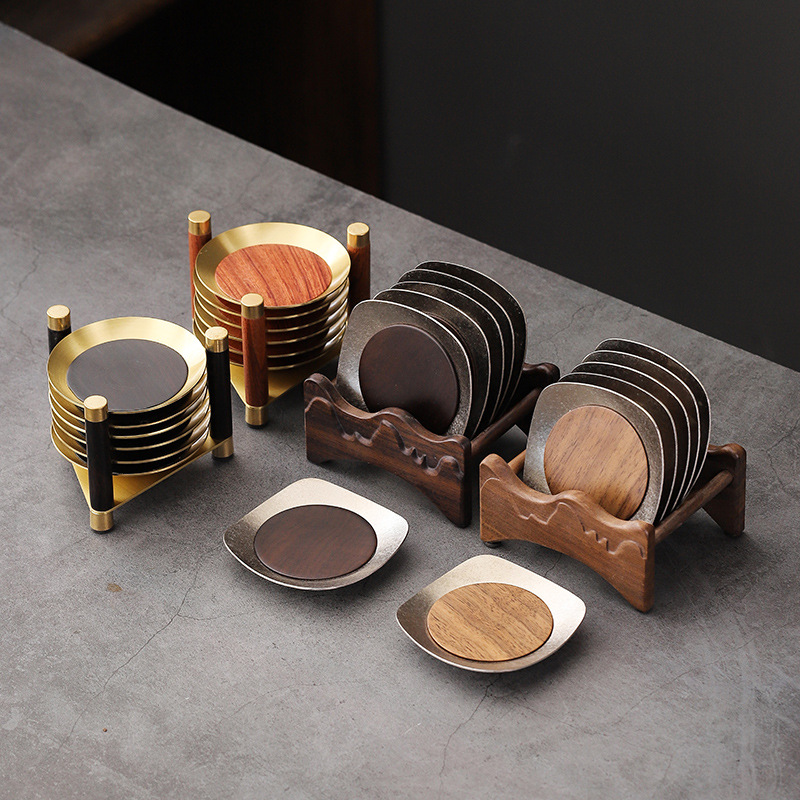 胡桃木钛杯垫紫光檀实木铜茶杯托