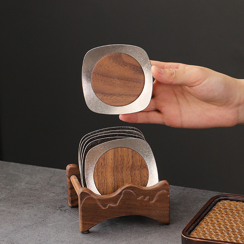 胡桃木钛杯垫紫光檀实木铜茶杯垫杯托茶垫茶托防烫茶垫会客高档茶