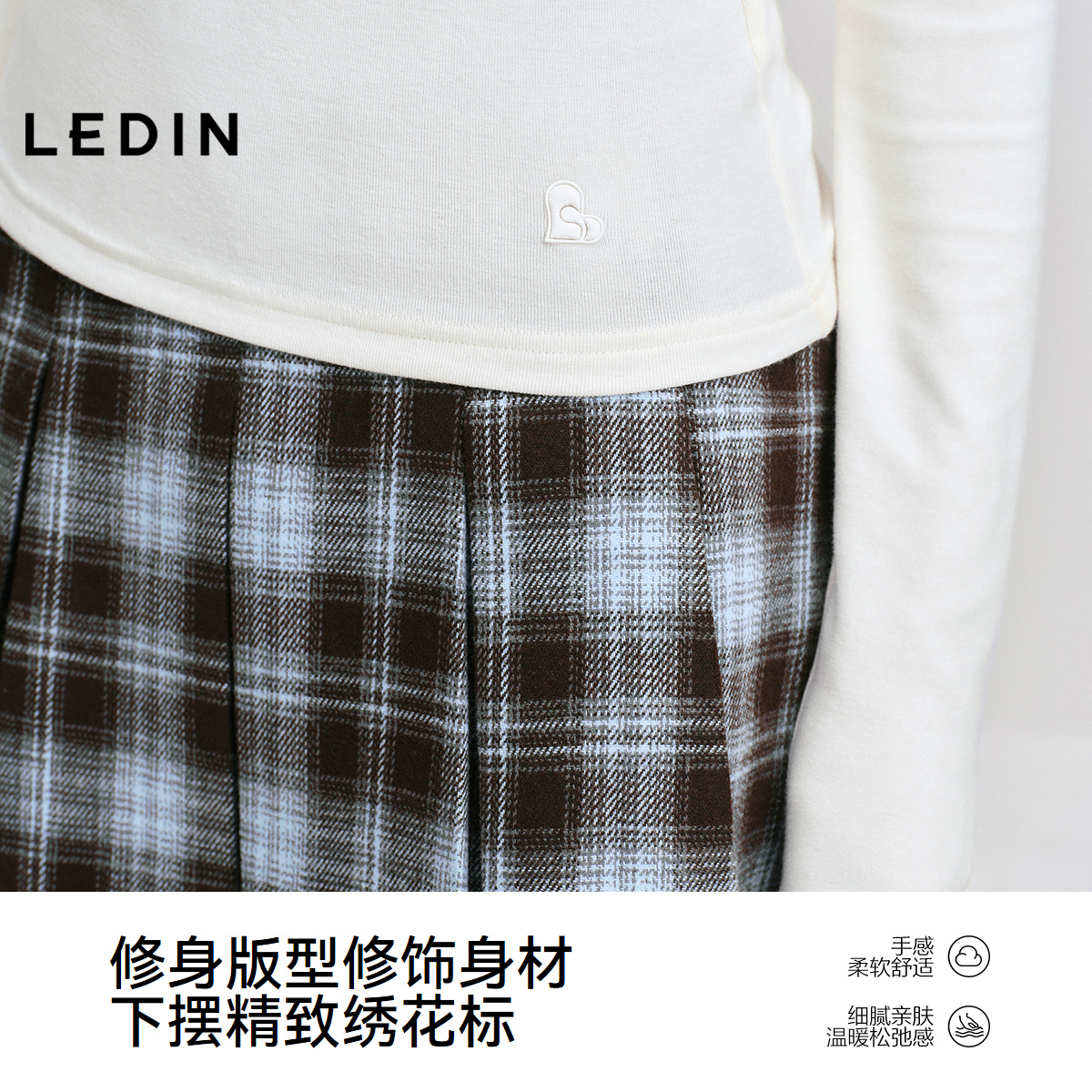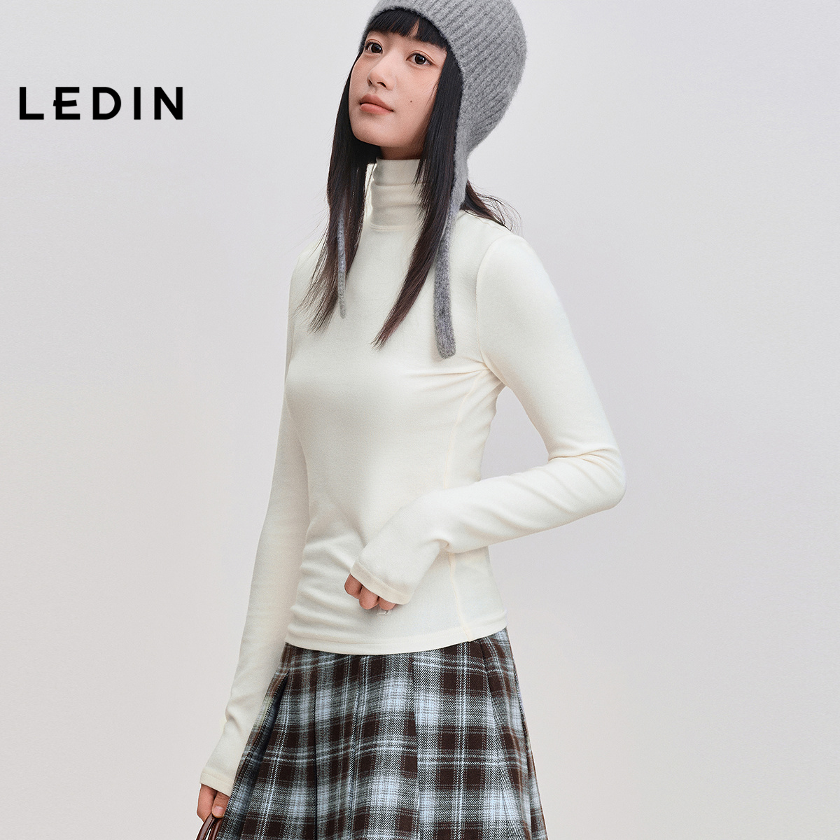 【商场同款】乐町翻领含羊毛打底衫女冬新款白色长袖T恤C8CPF4138