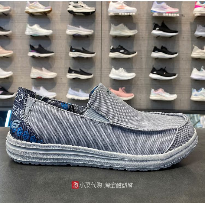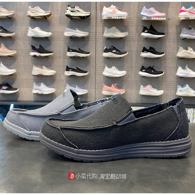 斯凯奇男鞋一脚蹬帆布鞋豆豆鞋