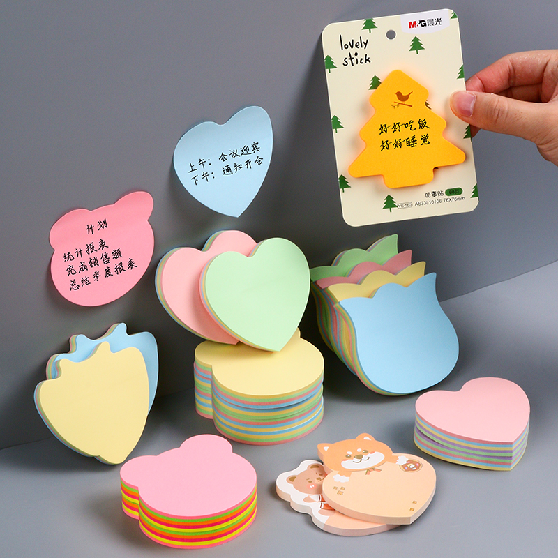 晨光造型便利贴爱心n次贴学生用可爱卡通少女便利贴粘性强彩色告示贴便签纸可撕优事贴办公外卖留言贴纸网红