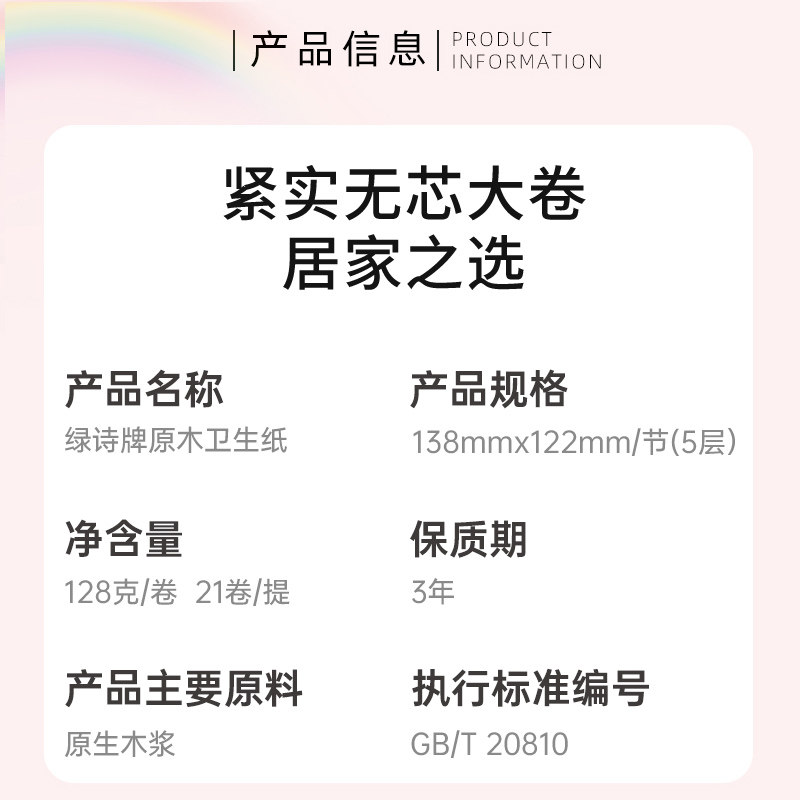 绿诗5.4斤卫生纸卷纸家用实惠装纸巾大粗卷整提厕所纸无芯卷筒纸