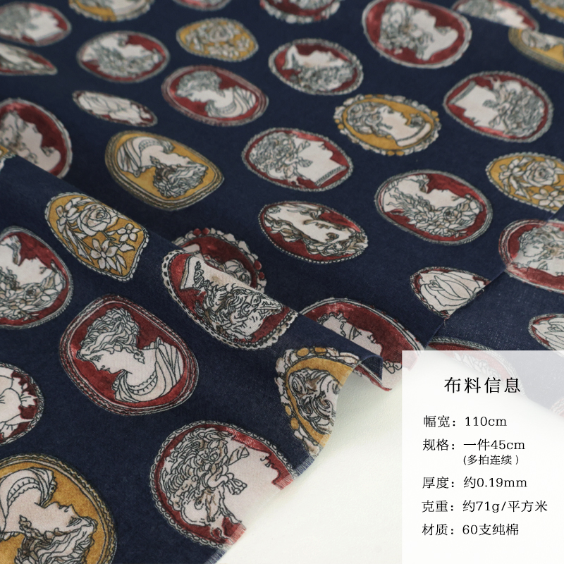 日本进口纯棉布料hokkoh60支连衣裙轻薄柔软手工上衣服装女王肖像