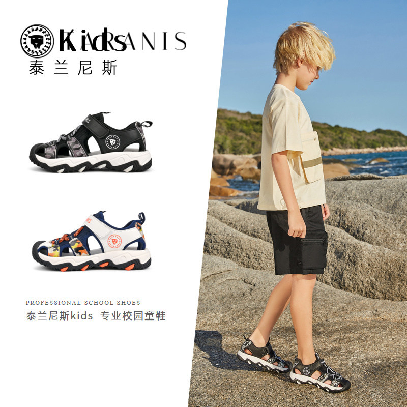 泰兰尼斯Kids男童包头运动凉鞋儿童夏季软底沙滩鞋中大童鞋子