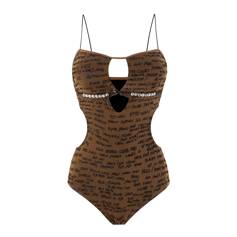 少年齐原创 新款美拉德咖色腰侧镂空性感显瘦连体温泉少女游泳衣