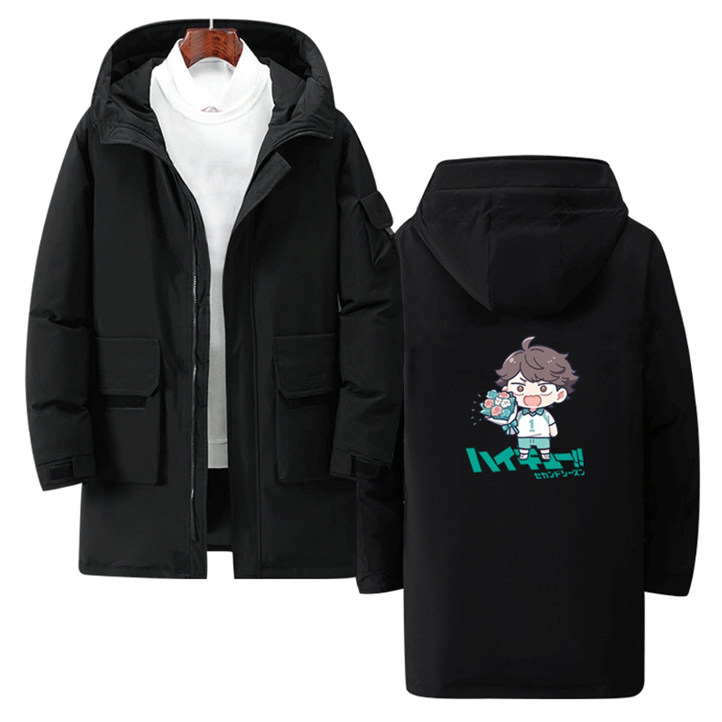 排球少年动漫可定制中长款羽绒服周边及川彻卡通Q版男女情侣秋冬