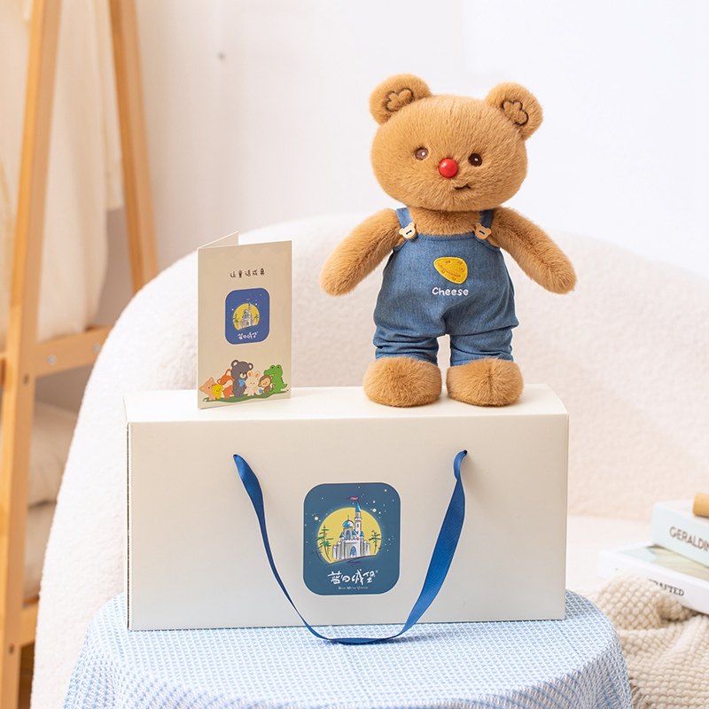蓝白城堡兜兜小熊玩偶可爱泰迪熊公仔毛绒玩具女生布娃娃生日礼物