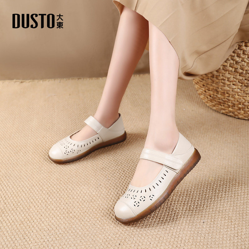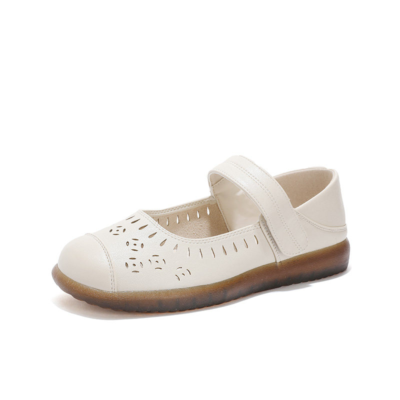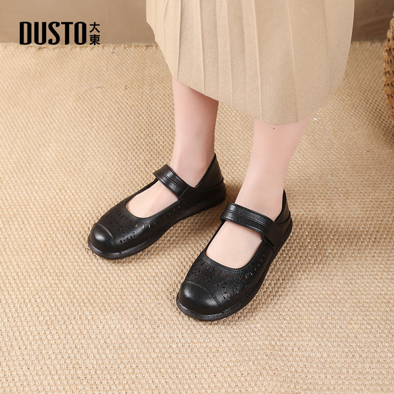 大东中老年妈妈鞋2026新款秋季舒适平底单鞋镂空透气软底防滑凉鞋