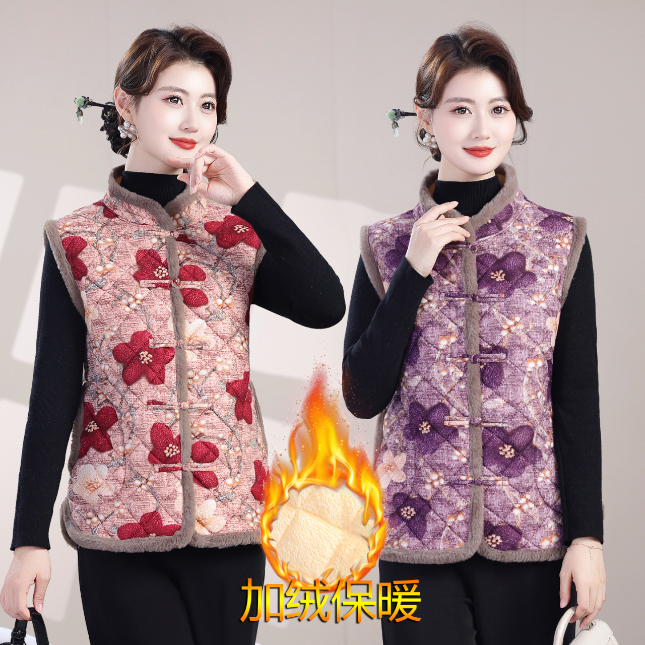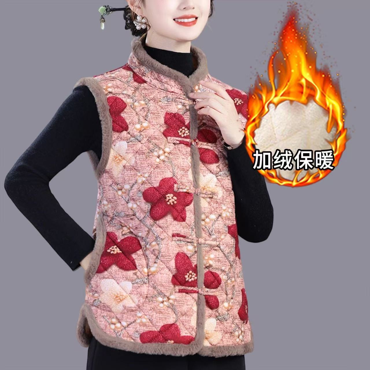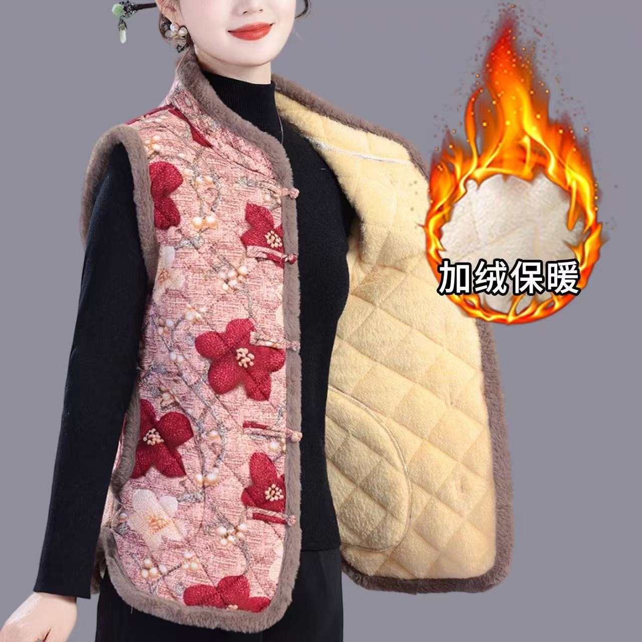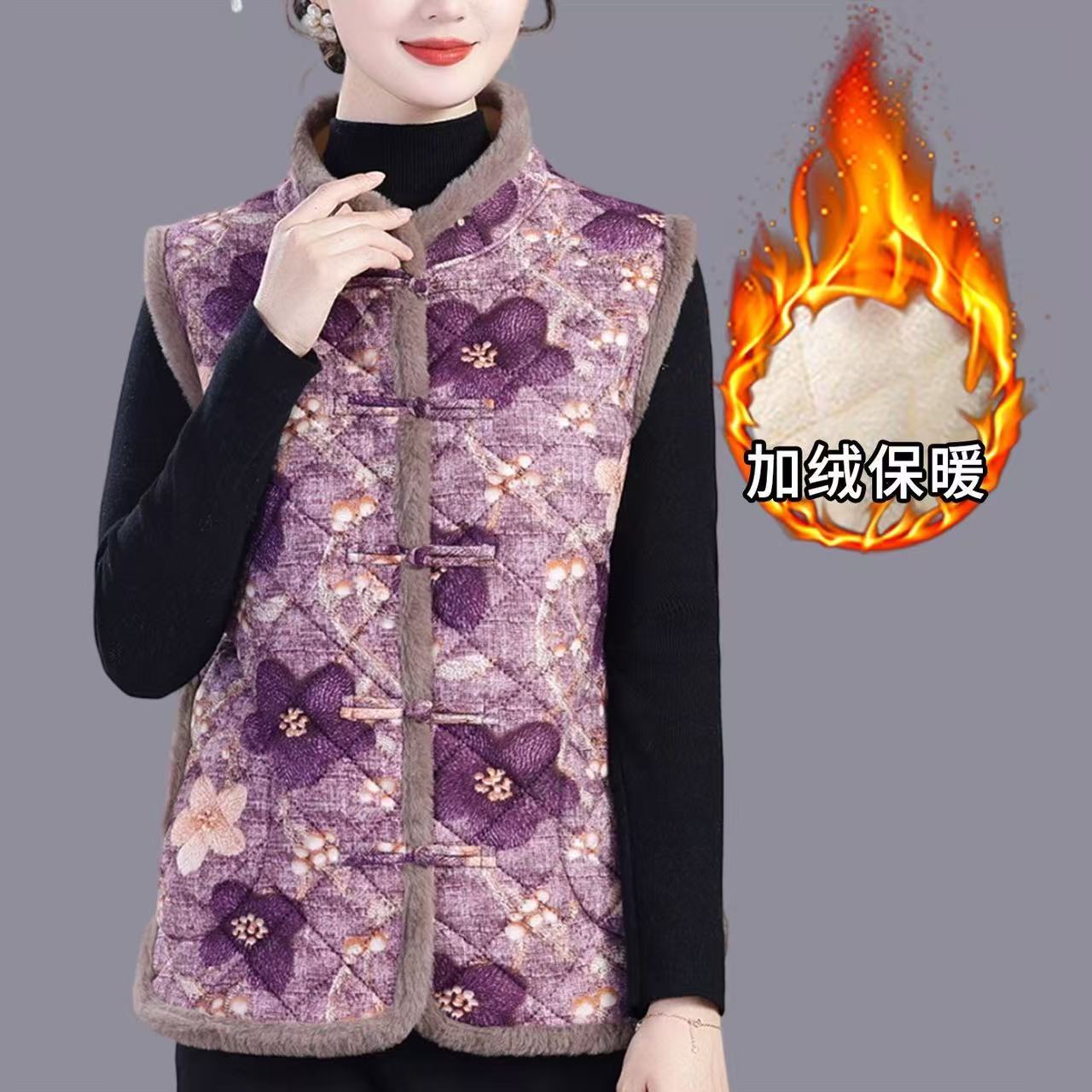 妈妈冬季加绒加厚马甲洋气加厚坎肩中老年女冬季保暖洋气背心棉衣