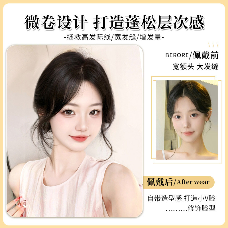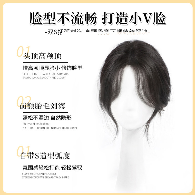 假发女片头顶增发量遮白发蓬松高颅顶自然前额八字括弧刘海补发片