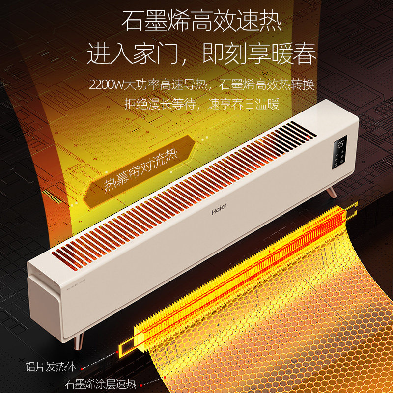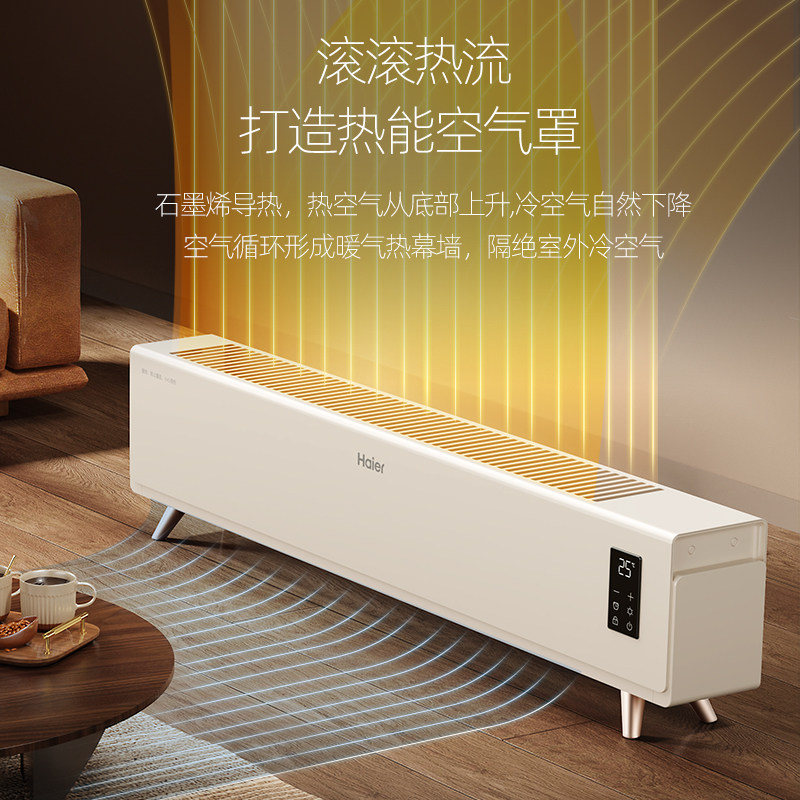 海尔踢脚线语音取暖器家用节能省电暖气大面积2024新款冬季电暖器
