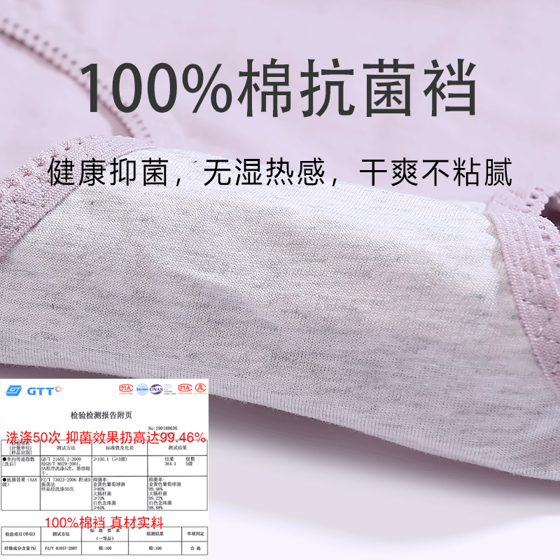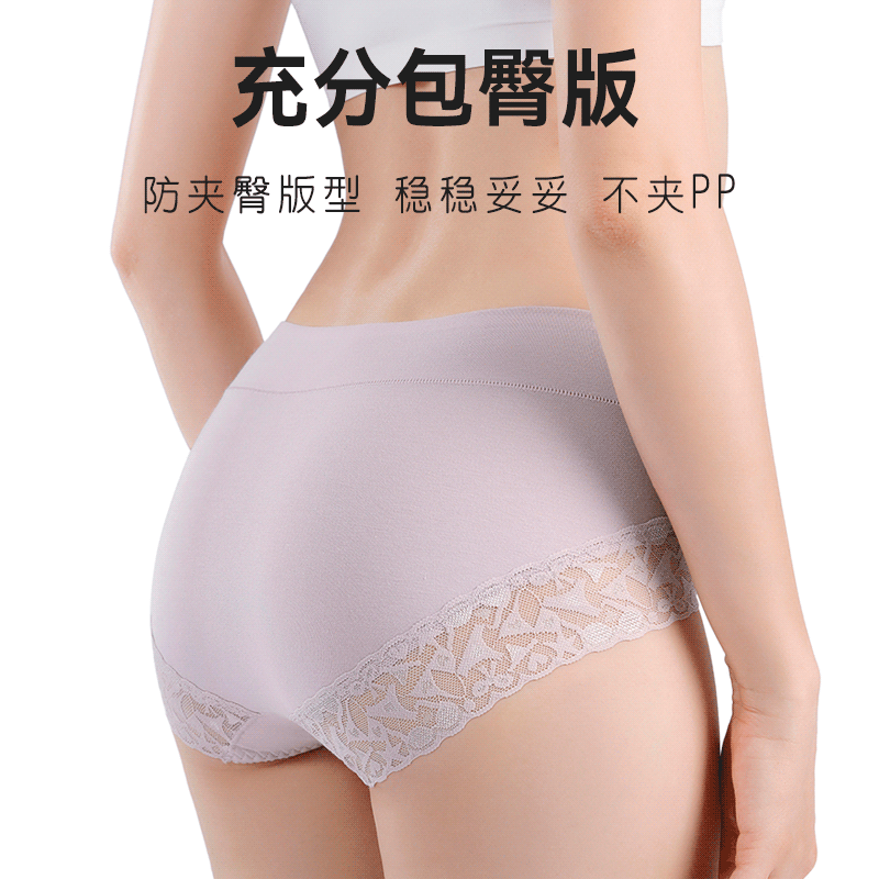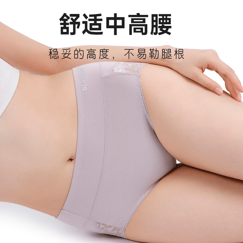 蝶安芬女士内裤女生纯棉抗菌中腰无痕蕾丝边性感100%全棉裆三角裤