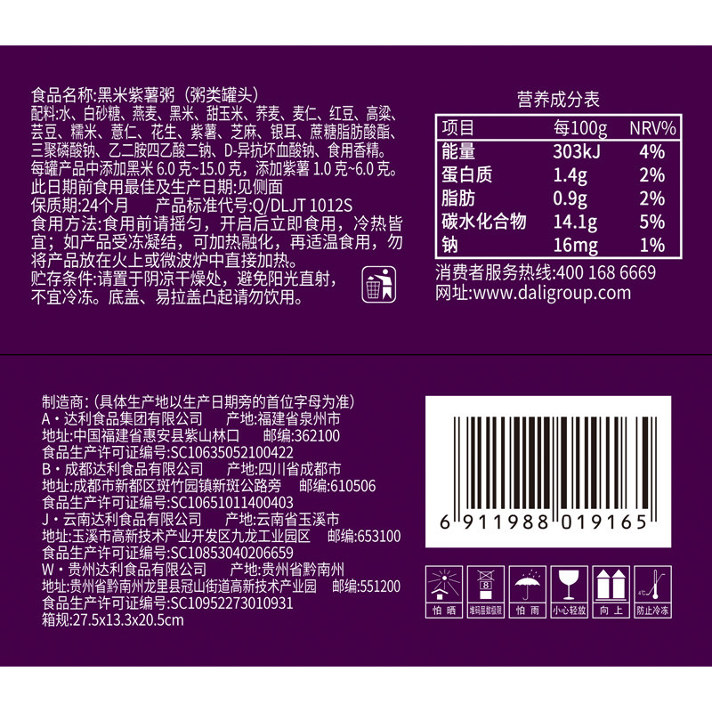 达利园黑米紫薯八宝粥